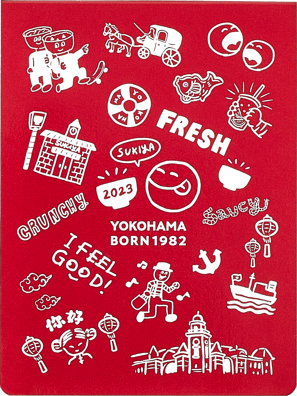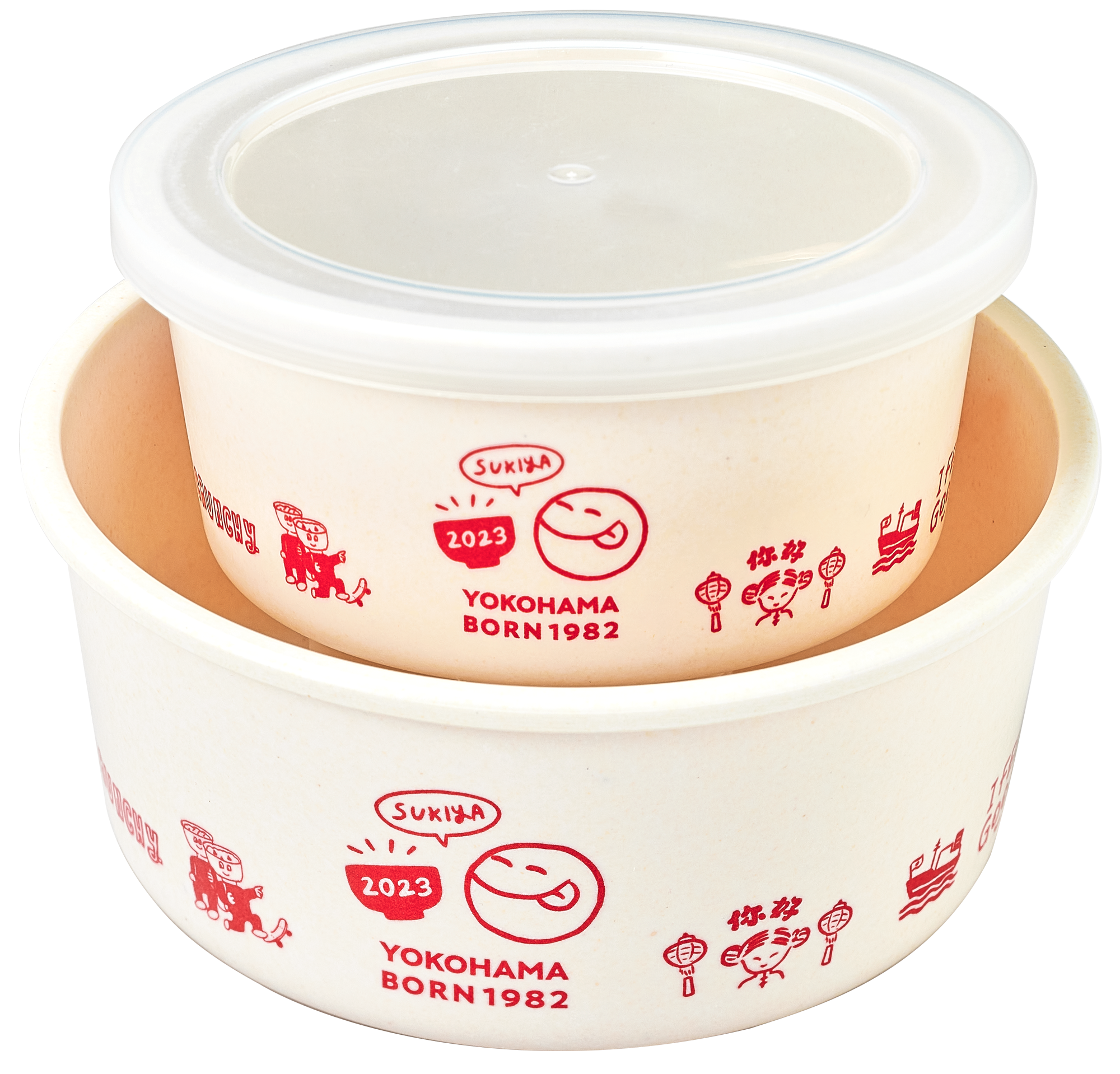 お弁当を包むのに丁度良いサイズの「すき家オリジナル風呂敷」は、「元気チャージすき家」をテーマにすき家発祥の「横浜」と、様々な文化が交わる雰囲気をイメージしたイラストが描かれています。「フードコンテナ」と「カトラリーセット」をまとめて包むことができます。
