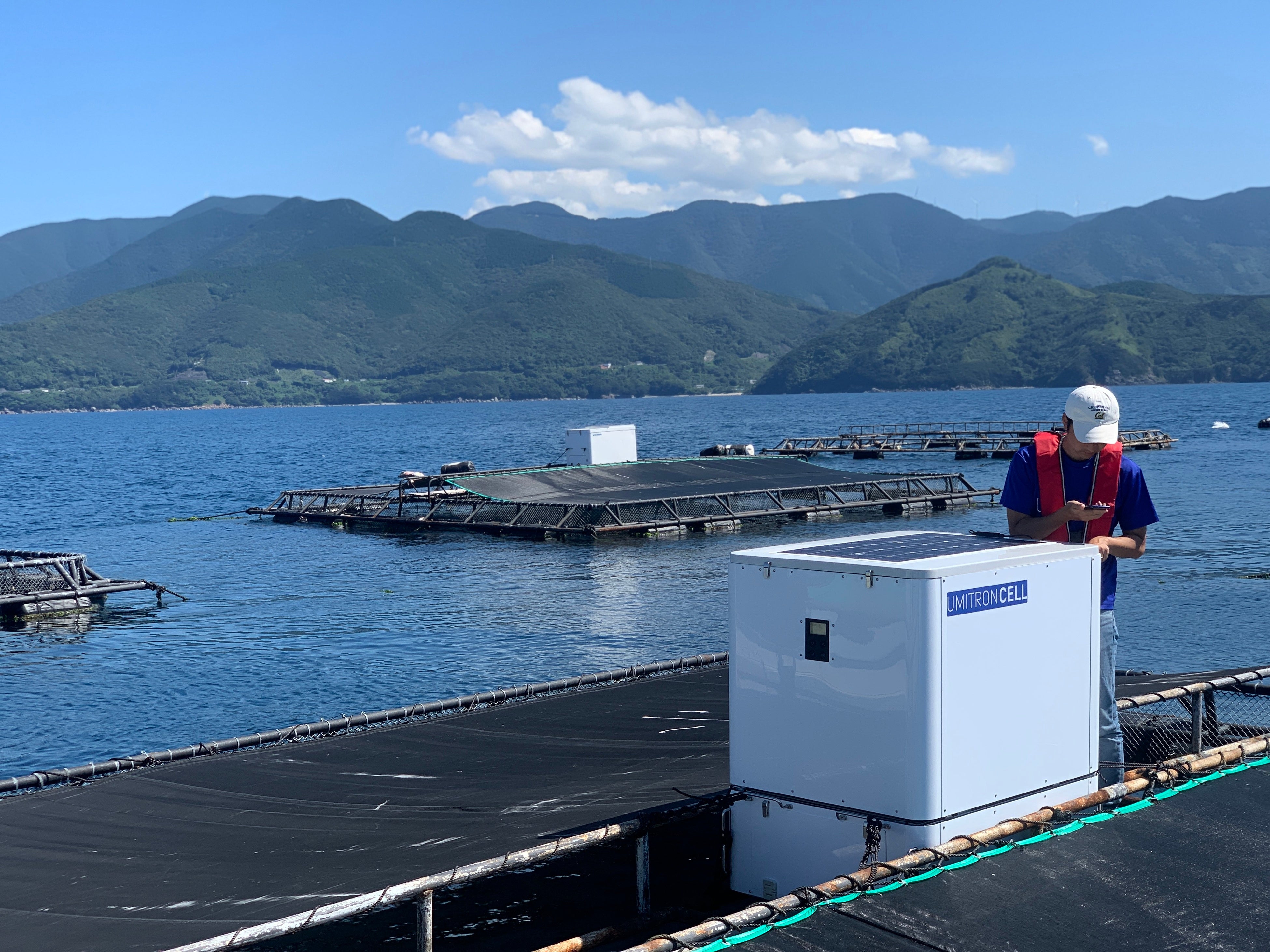 「UMITRON CELL」は、AI・IoT技術を活用した水産養殖者向けスマート給餌機です。スマートフォンなどの端末から生け簀で泳ぐ魚のリアルタイム動画を見ながら遠隔で餌やり操作が可能。また、AIが魚の食欲を判定し、餌量やスピードを最適化、制御することができるため、労働負荷の削減と餌の最適化、海へ餌が流出することを防ぎ環境に配慮した養殖業の実現に貢献しています。