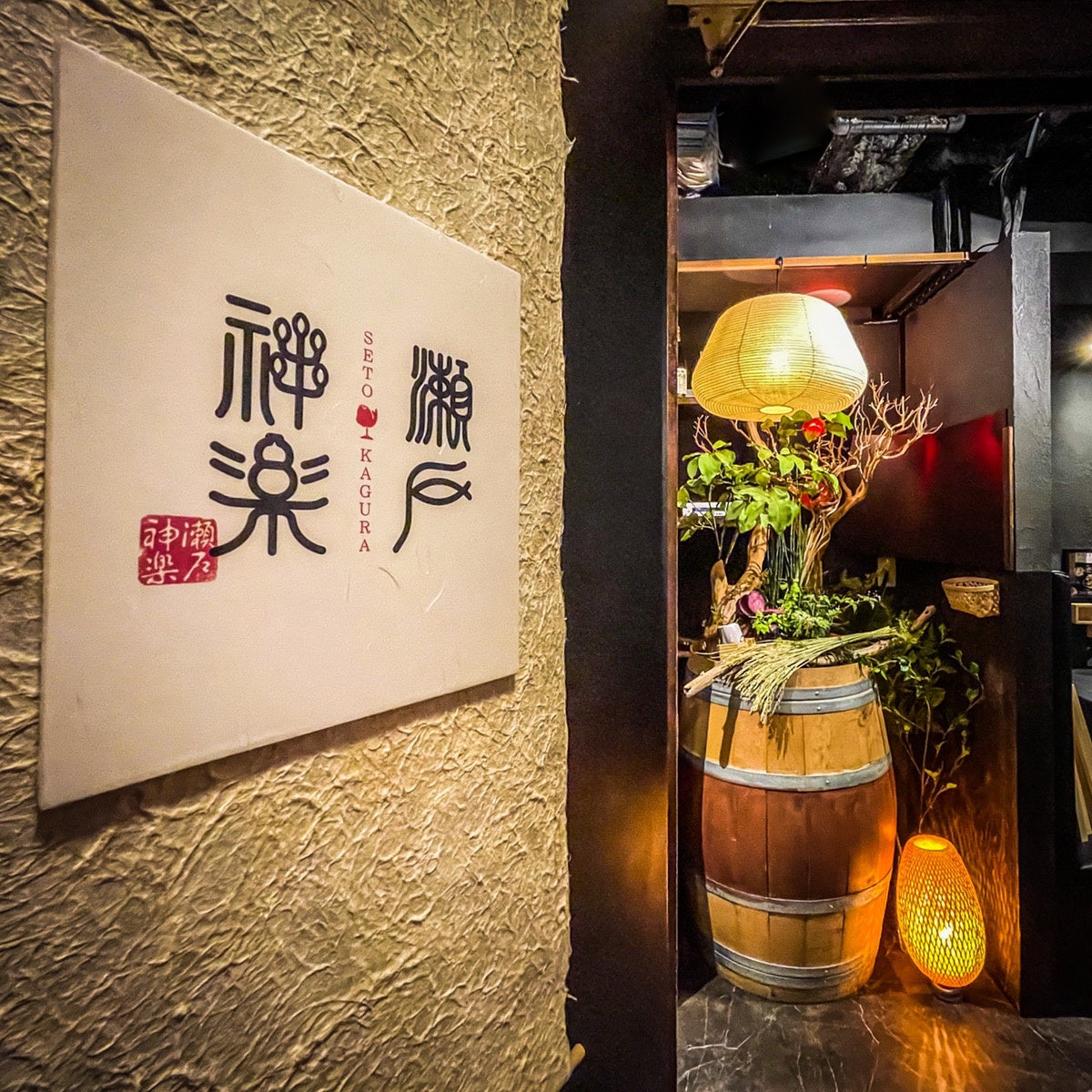瀬戸神楽は、「和」を基調としたシックで落ち着いた雰囲気のお店となっております。お一人様でもお越しいただけるようにカウンター席を設け、ご夫婦、カップル様だけでなく、ご家族でもご利用頂けるように広いボックス席もご用意しております。