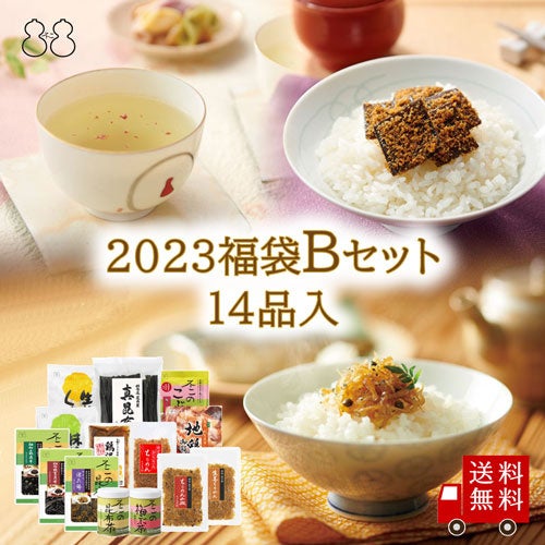 不二食品株式会社(本社:大阪市港区、代表取締役社長:藤井隆義)は、『不二食品公式オンラインショップ』と『こぶちゃ本舗』で2023年福袋の販売をスタートします。昆布茶やちりめん佃煮、くず湯、だし昆布、梅こぶ茶オリジナルグッズ(マスキングテープ・巾着・エコバッグ)などが入ったお得な詰合せを3種類ご用意いたしました。全国送料無料・数量限定!
