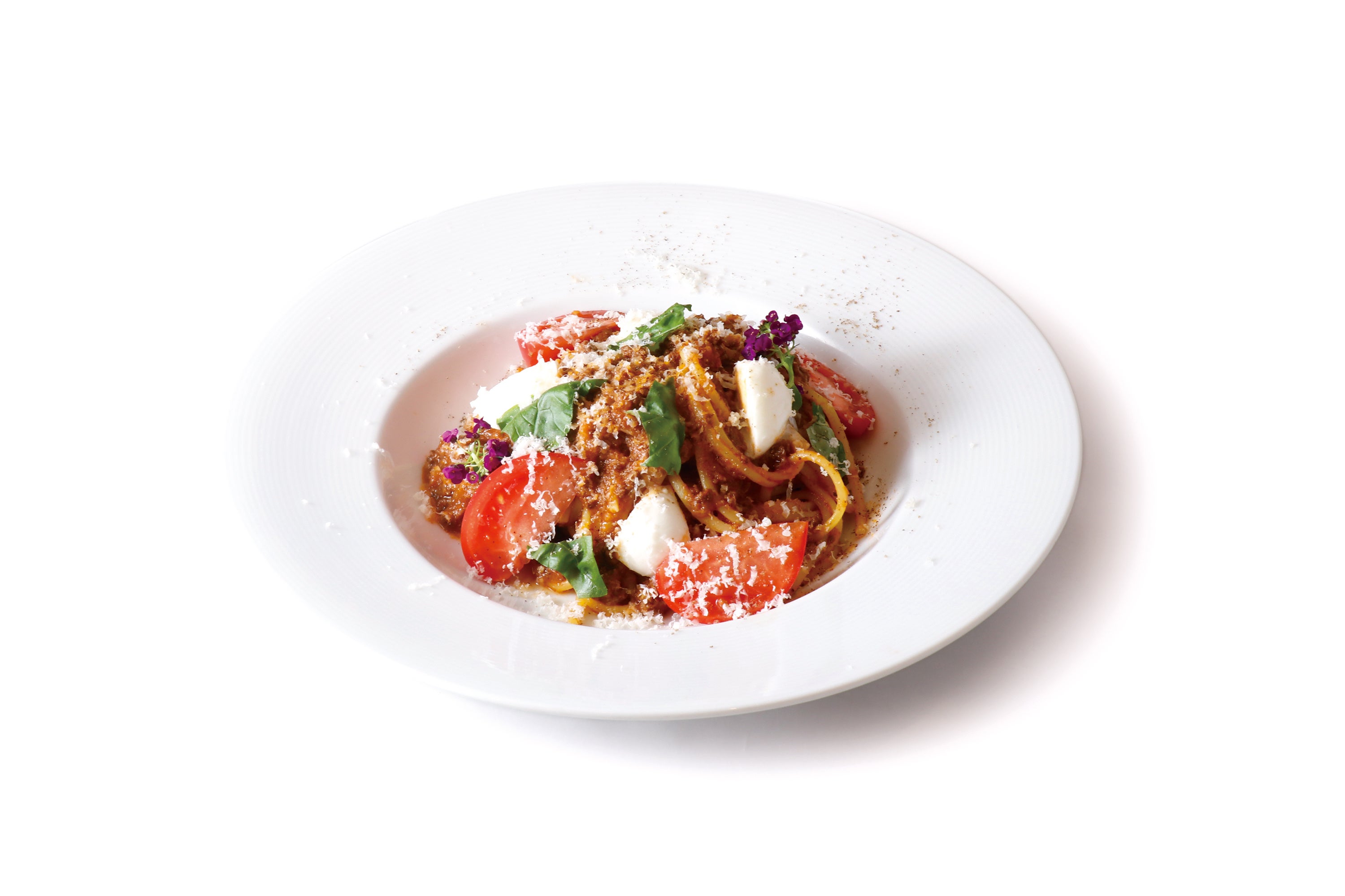 蝦夷鹿のラグーとフルーツトマト、モッツアレラを味わう「蝦夷鹿のラグーパスタ フルーツトマトとモッツァレラ」