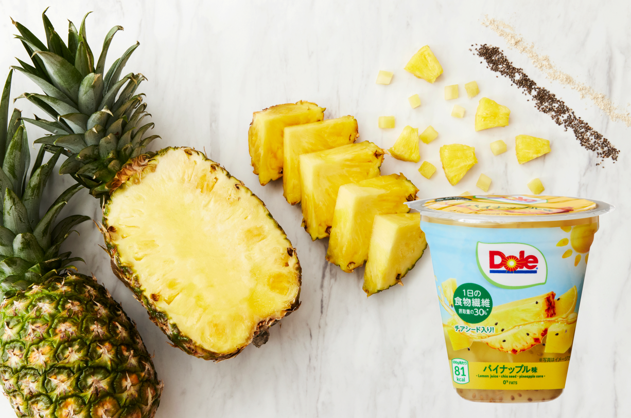 株式会社ドール(本社:東京都中央区、代表取締役社長 渡辺 陽介、以下 ドール)の加工食品本部は、“いつでもどこでも、全力ナチュラル<フル活>習慣”をスローガンに掲げ、“ナチュラルぎっしり<フルーツカップ>でフル活リフレッシュ”をテーマに、不足しがちな食物繊維に着目したドール初のフルーツカップ『フルーツカップ 198g パイナップル味 食物繊維入り』を12月5日(月)より全国で発売します。