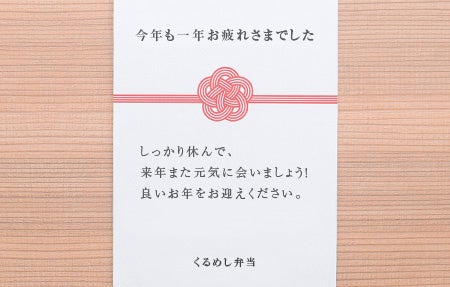 「くるめし弁当」では一部店舗にて、オリジナルの掛け紙にメッセージを入れるサービスを行っています。お弁当の熨斗にメッセージを載せて日頃の感謝の気持ちを伝えてみませんか。