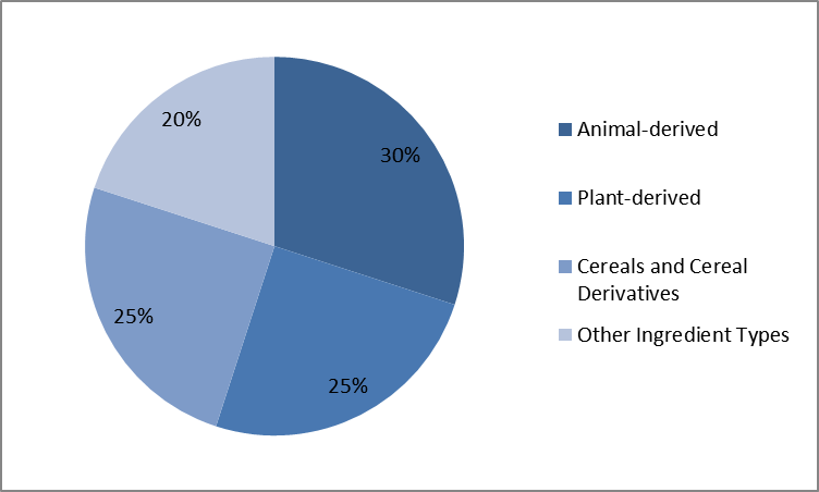 回答: 調査の結果、動物由来 (30%)、植物由来 (25%)、穀物および穀物派生物 (25%)、その他の成分 (20%) に基づいてセグメント化できることがわかりました。動物由来のペットフードの人気は、その強力な栄養プロファイルのために高い. 動物資源が容易に入手できることは、業界の成長をさらに促進します。