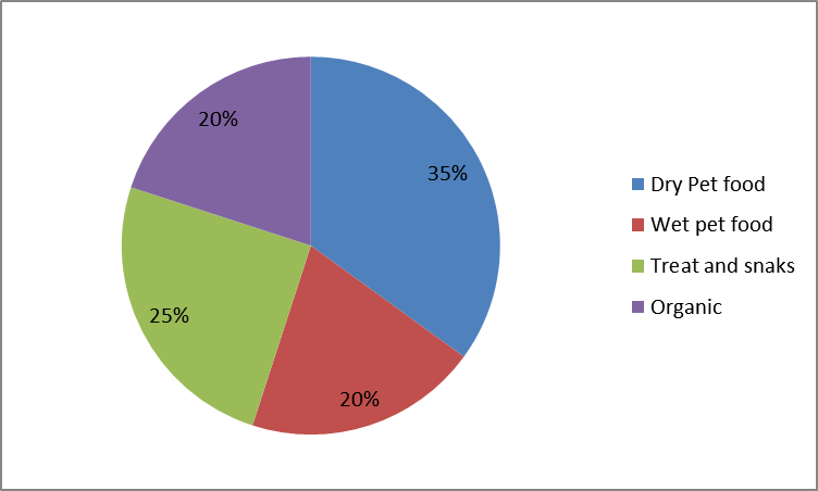 回答: 調査によると、ペット フードは 20% がドライ ペット フード、30% がウェット ペット フード、20% がおやつとスナック、30% がオーガニックであることがわかりました。乾燥食品セグメントは、動物が全体的な健康を維持するために必要な歯ごたえと噛み応えを提供するため、2021 年も大きな業界シェアを維持しました。ドライ ペット フードは、他の製品と比較して需要が急速に伸びています。犬は最も一般的に採用されているペットであり、主要な競合他社は、ペットフード原料業界で大きなシェアを獲得するために、ペットフードの提供に注力しています。米国は、登録されたペットの犬の数が最も多く、約 7,300 万頭と考えられています。