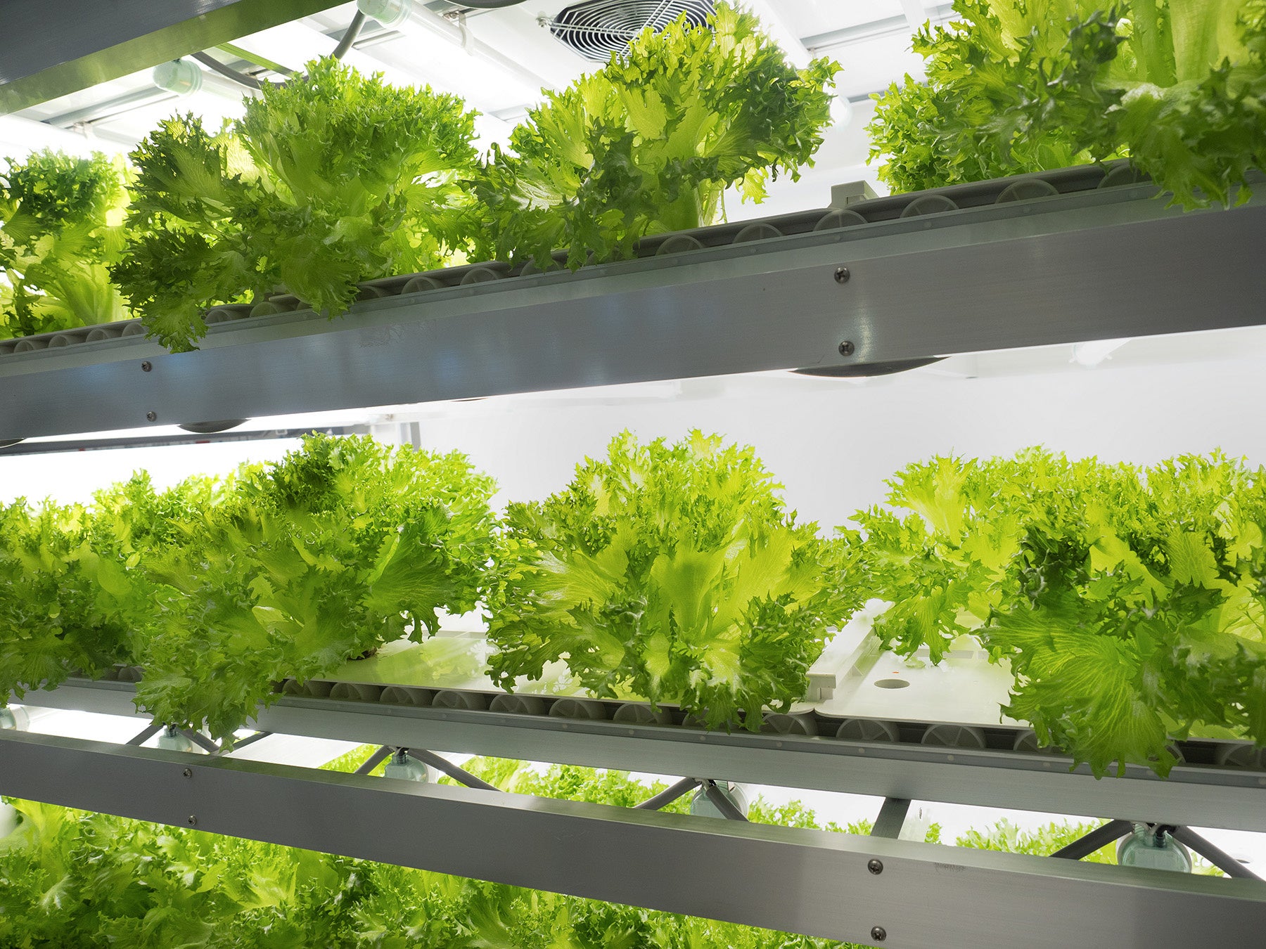 サンマルクカフェのフリルレタスは環境に配慮した、水耕栽培で育てられております。植物工場の養液は循環型で、必要な水はレタスが吸収する分のみで、土耕栽培の8分の1程度で節水できます。また、土や異物混入もなく、腐食も少ないため、ロスが少なく食品ロス低減となります。光合成に必要なCO2は溶接工場等から排出されるCO2から不純物を除去したものをボンベに充填し使用しております。