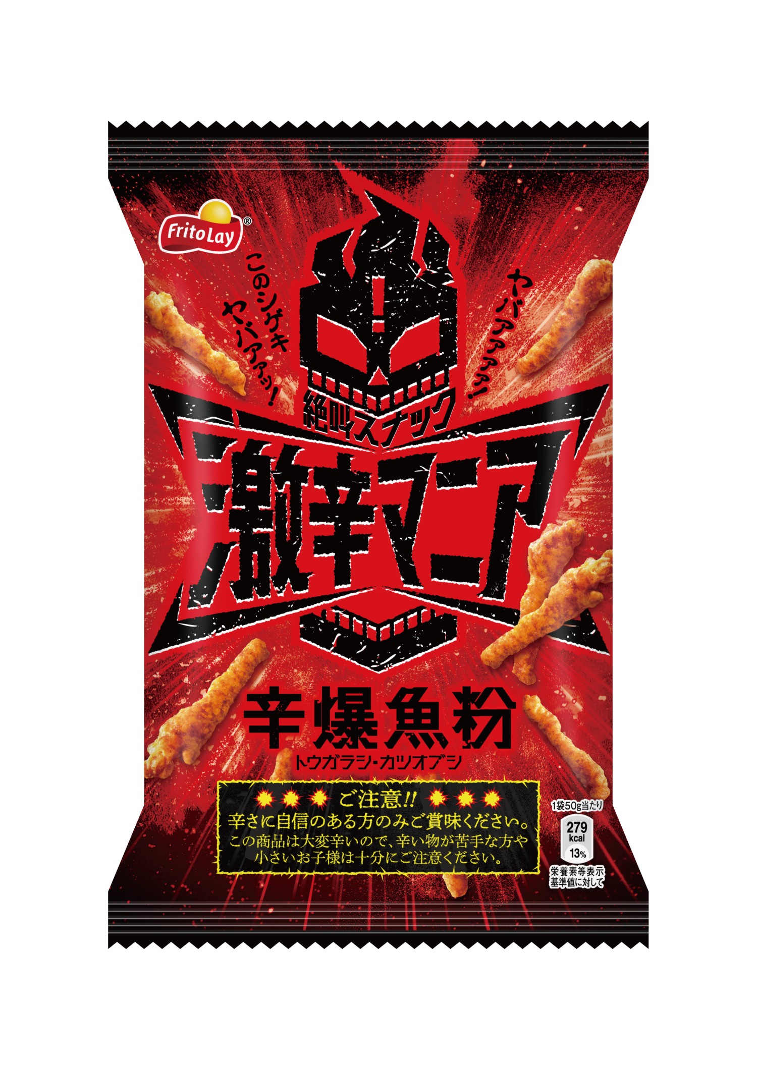 2022年3月に発表した新戦略「バリュエティスナック」を軸にスナック菓子を製造・販売するジャパンフリトレー株式会社(カルビーグループ、本社:茨城県古河市、代表取締役社長:松田 光弘)は、魚粉の旨味と唐辛子の強烈な辛さが相性抜群のコーンスナック『激辛マニア 辛爆魚粉(しんばくぎょふん)』を、2022年12月12日(月)からコンビニエンスストア先行で発売します。なお、コンビニエンスストア以外の店舗では、2023年1月9日(月)から発売します。