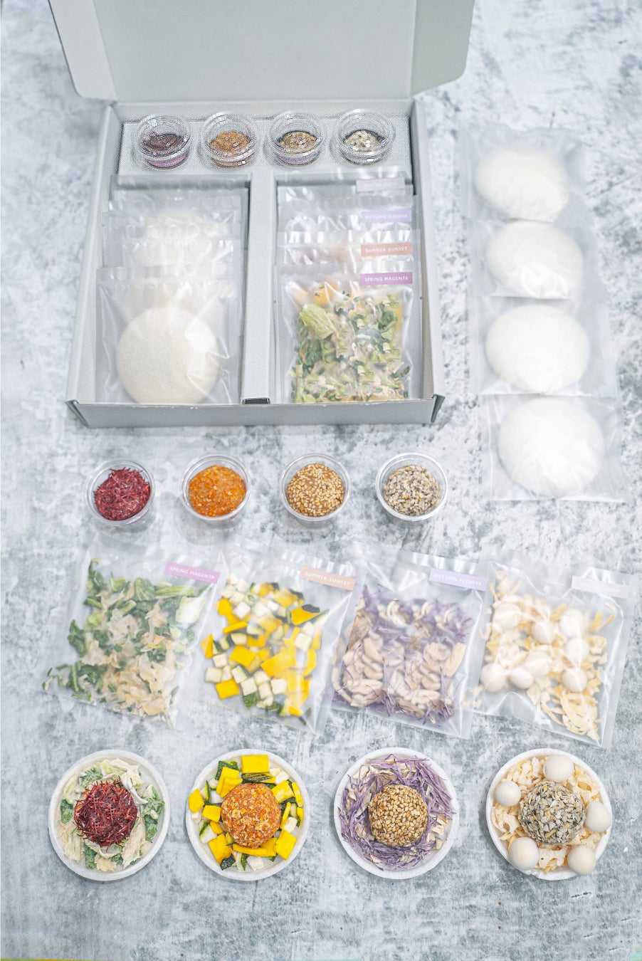 MISONOMIはキャンバスに見立てたもなかに、彩り豊かなフリーズドライの具材と旨味たっぷりの生みそを盛り付けた、ちょっと新しいみそスープの実。ご自身の手でお湯を注ぎ、実を崩していくと、温かな一杯が出来上がります。素材にこだわった甘みのある麦みそとあごだし、ヴィーガンでも楽しめる玄米みそ、慣れ親しんだ米みそと野菜ブイヨンなど、ヘルシーで旨みたっぷりの出汁とフリーズドライの具材を組み合わせました。