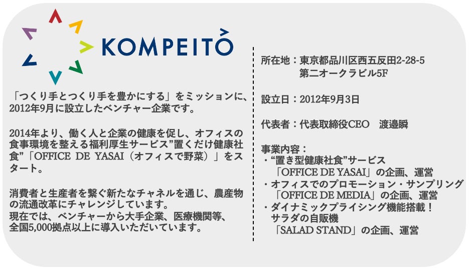 - 運営会社:株式会社KOMPEITO(コンペイトウ)https://www.officedeyasai.jp/
