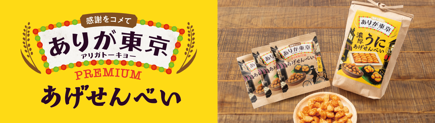株式会社吉村(東京都品川区、代表:橋本久美子)は、「ありがとうを伝える東京みやげ」をコンセプトにした、「ありが東京」のプレミアムライン【 ありが東京プレミアムあげせんべい】全4種を全国発売いたします。
