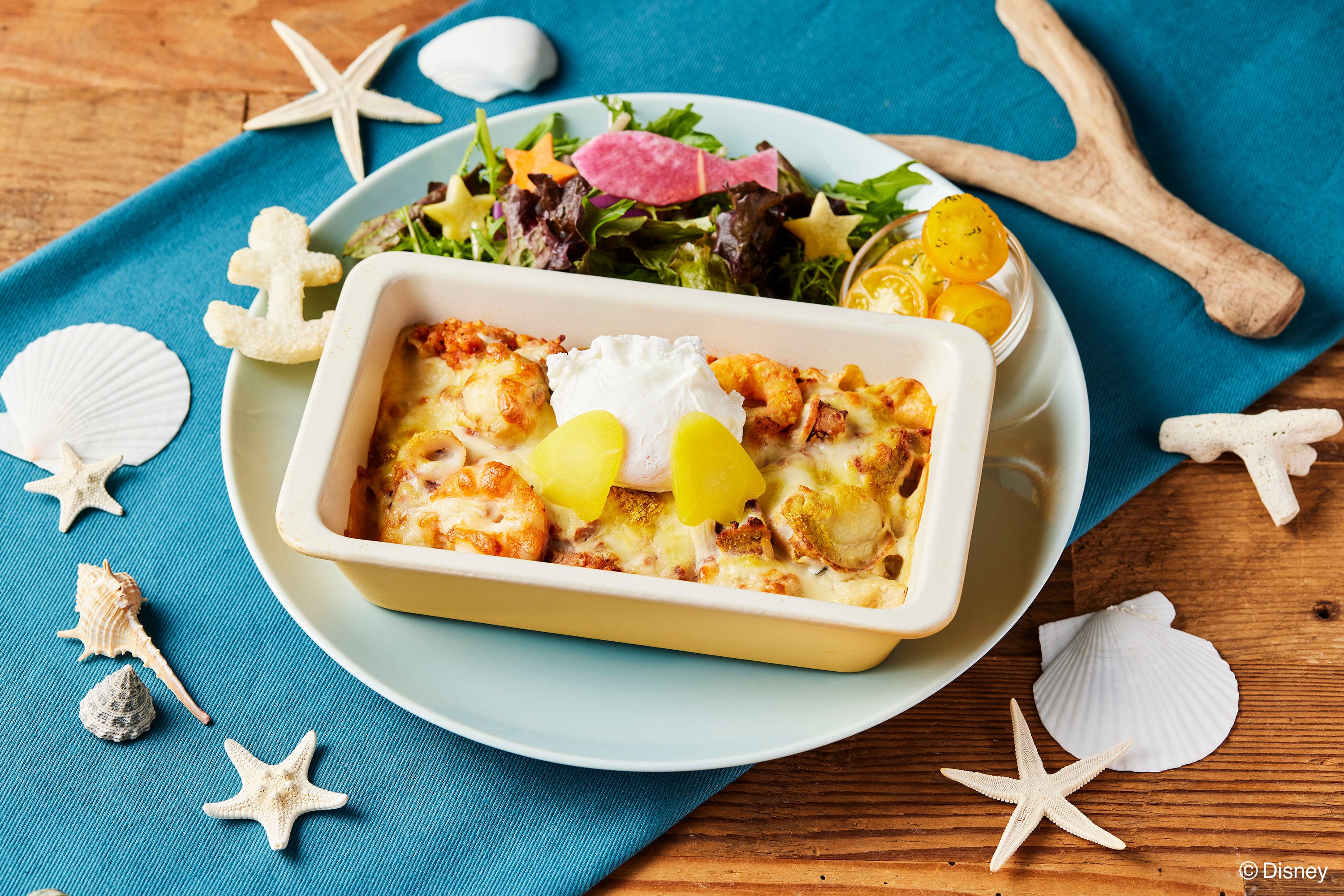 当店のメニューは全て、「4 STEPS for the FUTURE」をテーマに、「どのような素材を、どのように選び、どのように提案し、どのような体験を通じて提供するか」にこだわり、信頼がおける食材を、カロリー・塩分・脂質などに配慮した調理法でご提供いたします。メニューには、ミッキーマウスやミニーマウスをはじめとするキャラクターの世界観やストーリーを反映し、大人も子供もお楽しみいただけるデザインを施しています。また、「横浜赤レンガ倉庫店」ならではの取り組みとして、「Yokohama Fisherman’s Wharf」をストアコンセプトに、ドナルドダッグをイメージした当店限定のメニューをご提供いたします。「おいしさ」と、ディズニーの世界観を通じた「楽しさ」を掛け合わせた食体験をご提案いたします。