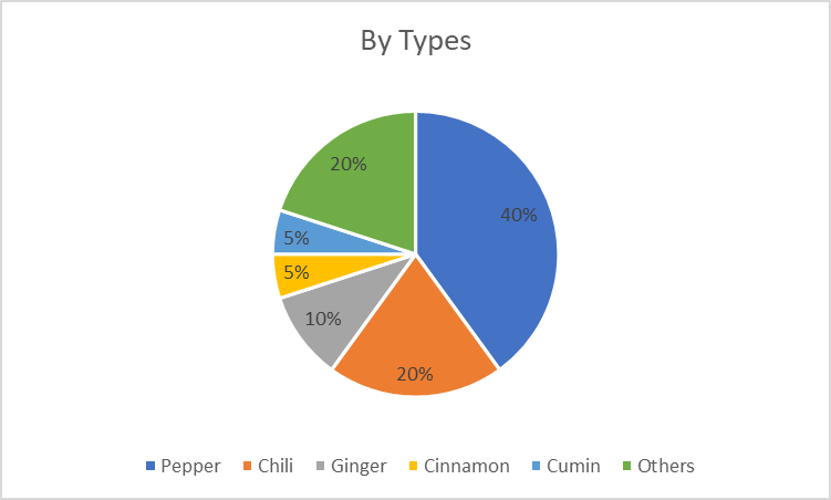 回答: 私たちの調査では、ペッパーが提供するフレーバーの人気が高まっており、その健康上の利点に対する消費者の意識が高まっているため、ペッパーはスパイスおよび調味料業界の大きなセグメントを占めると予想されることがわかりました。種類。