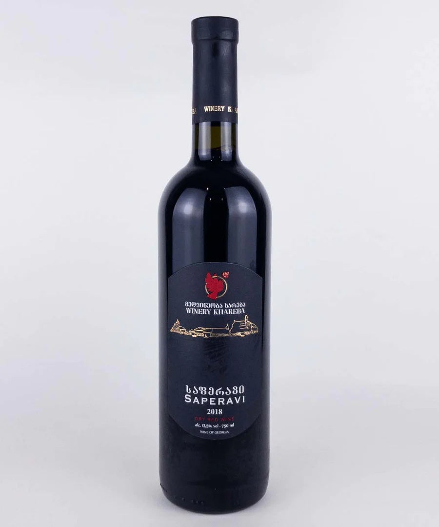 ジョージア東部にあるカヘティ地方で栽培されたサペラヴィ種のぶどうから作られた赤ワイン。濃いルビー色をしていて、フレッシュな赤い果実の香りが楽しめる。辛口の赤ワインなので、果物やハムだけでなく魚介や和食にも合わせられる万能さがあり、赤ワインを飲み慣れない人にもおすすめの一本。