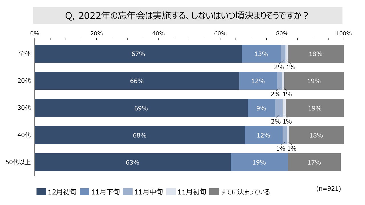 国内最大級の顧客満足度向上プラットフォーム「ファンくる」を運営する株式会社 ROI(本社:東京都千代田区 代表取締役社長:山口敬人)は、「ファンくる」会員を対象に、定期的に消費者の意識調査を実施しています。今回は忘年会についての意識調査(有効回答者数921名)を2022年11 月22日~11月28日に実施しました。