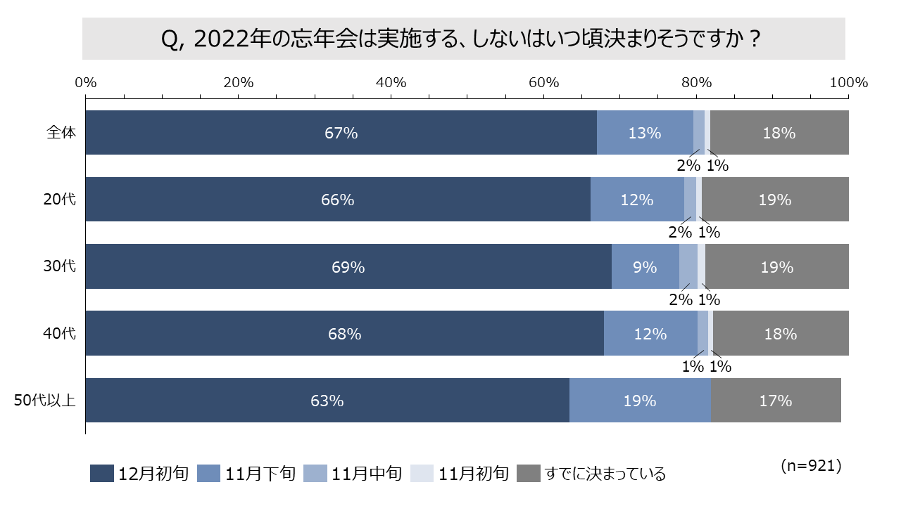 国内最大級の顧客満足度向上プラットフォーム「ファンくる」を運営する株式会社 ROI(本社:東京都千代田区 代表取締役社長:山口敬人)は、「ファンくる」会員を対象に、定期的に消費者の意識調査を実施しています。今回は忘年会についての意識調査(有効回答者数921名)を2022年11 月22日~11月28日に実施しました。