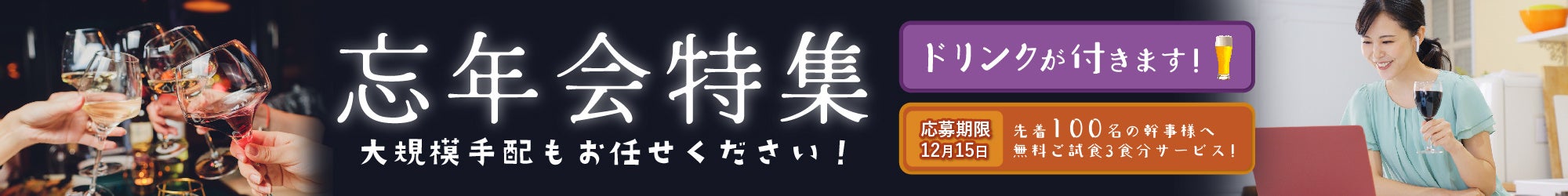 ・対象:企業様での50名様以上での忘新年会でのご利用をご検討の方