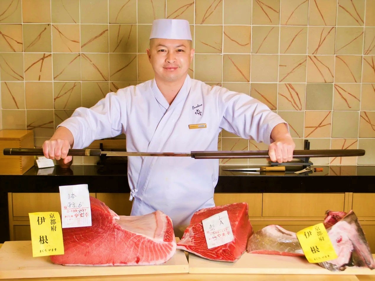 「海外で本物の鮨を握りたい」との情熱から32歳で「銀座おのでら」の⾨を叩き、2016年から「鮨 銀座おのでら」ロサンゼルス店で活躍。カウンターでの洗練された⽴ち居振る舞いと磨き抜かれたクオリティは、現地において「松⽊劇場」との呼び声も名⾼い。2019年以来、3年連続で⼆つ星を獲得し続けるスターシェフ。