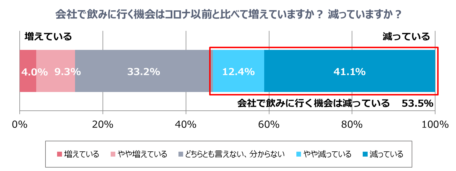 ■会社の飲み会、コロナ以前より「減っている」53.5%