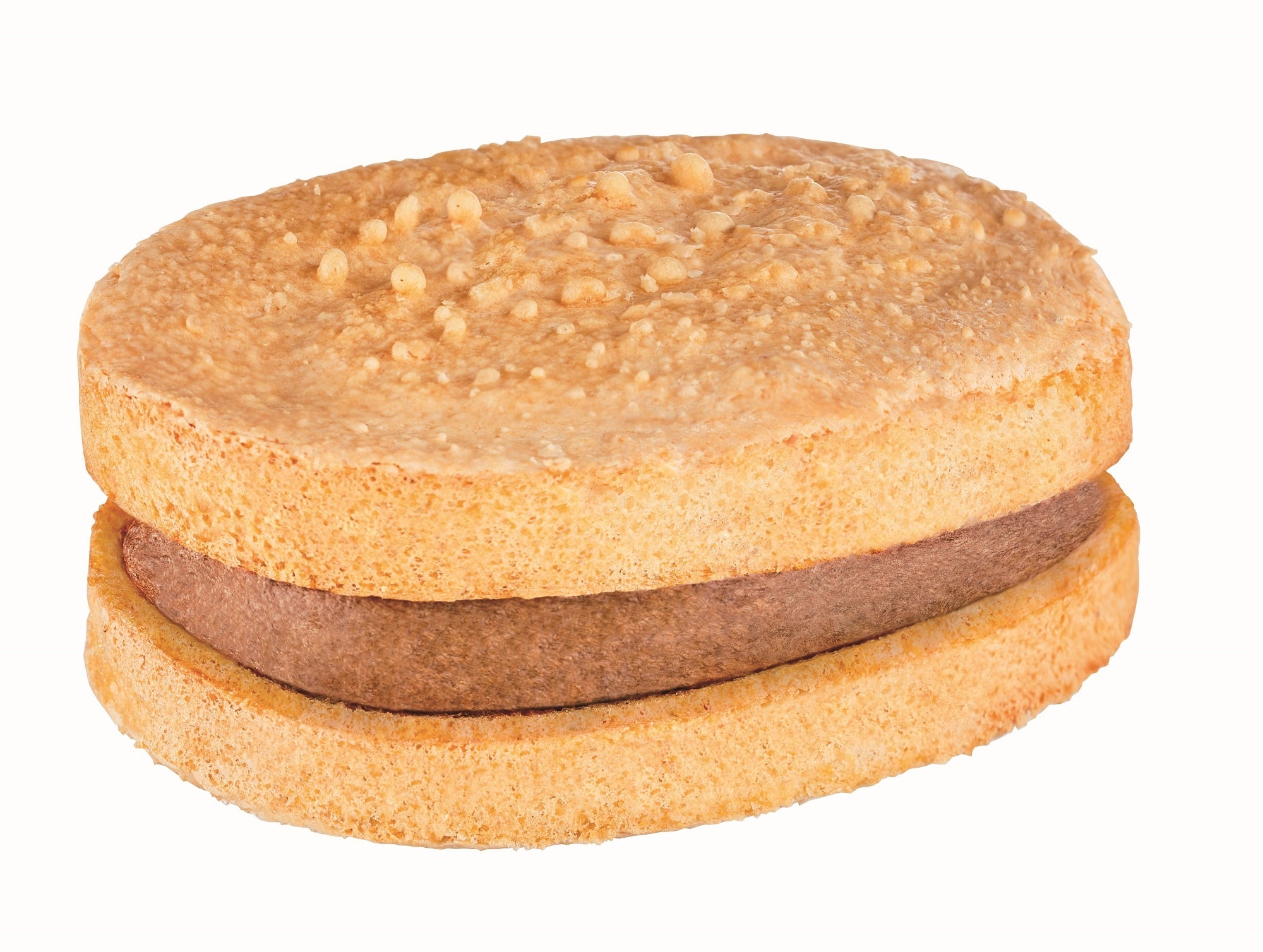 【内容】「サクッふわ」食感の生地×チョコの組み合わせが楽しめるサンドスイーツです。生地は、粉糖をかけて焼き上げることで外側は「サクッと食感」、生地にメレンゲを加えることで内側は「ふわっと食感」が楽しめる仕立てになっています。また、アーモンドパウダーだけでなくヘーゼルナッツパウダーも少量加えることで、生地の持つナッツ系の味わいに深みを与えています。