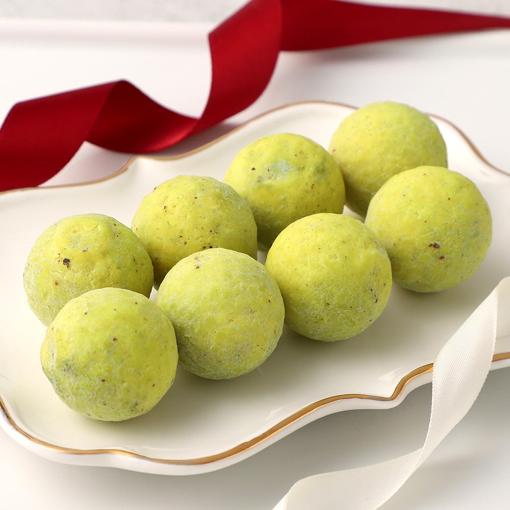 イギリス王室をはじめ、ロンドンのセレブに愛されている140年以上の歴史を持つ老舗ブランド一押しの新商品。人気のスペイン産のピスタチオのペーストをホワイトチョコでコーティングし、アイシングシュガーでドレスアップしました。鮮やかなグリーンは天然のスピルリナとウコンの色素を使用しています。