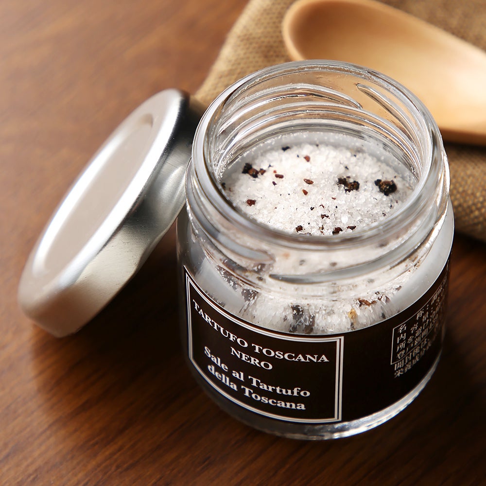 黒いダイヤと言われるトリュフが入った、香り高いトリュフ塩。一振りすると香りが広がり、旨みとコクが加わります。ポテト料理や卵料理をはじめ、ステーキやローストポテト、パスタ、サラダにかけるだけでゴージャスに。お料理好きな人にもオススメ。