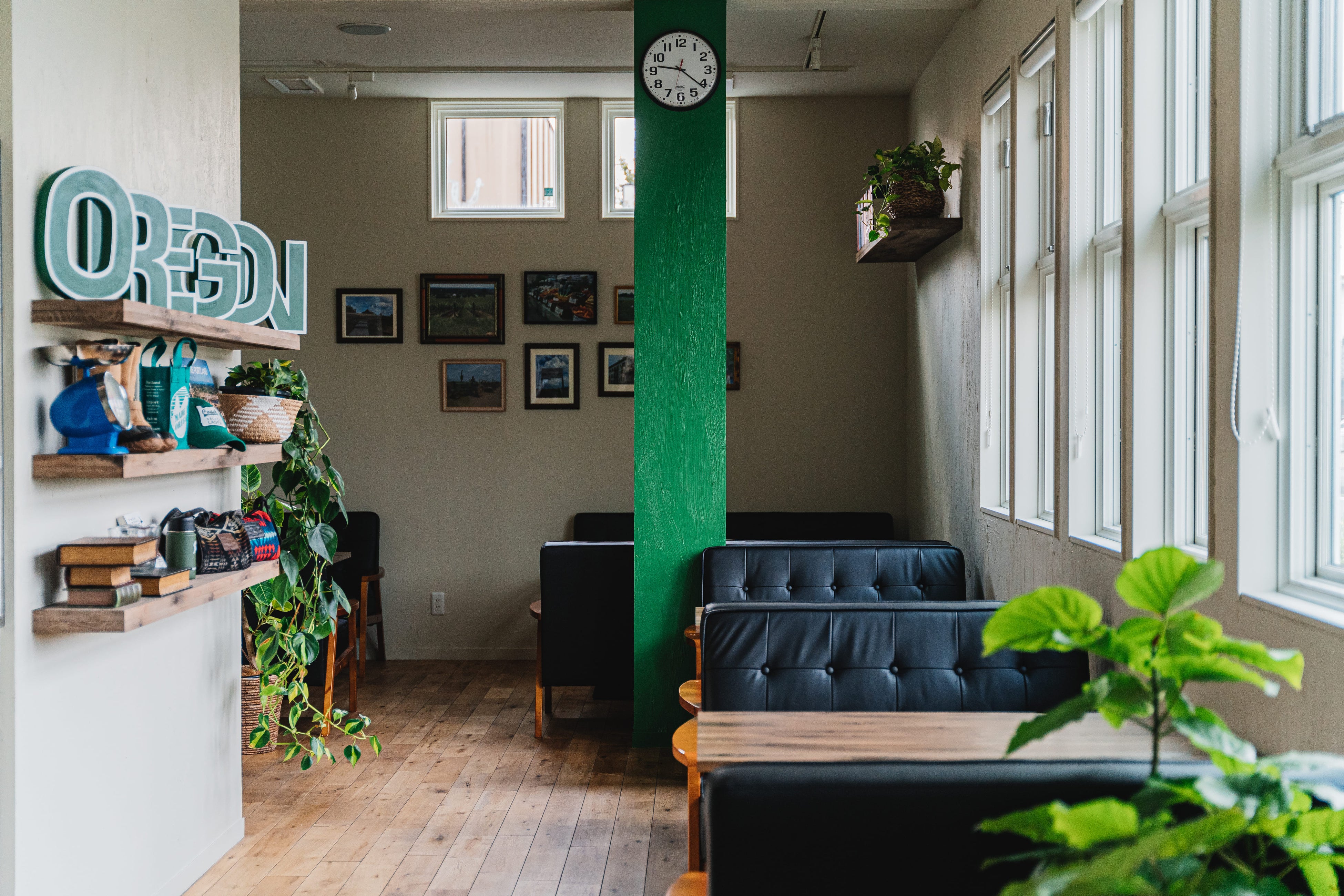 店内はテーマカラーであるソービーグリーンをベースに、店名の由来にもなっている米国オレゴン州ソービーアイランドの雰囲気を表現した内装になっています。