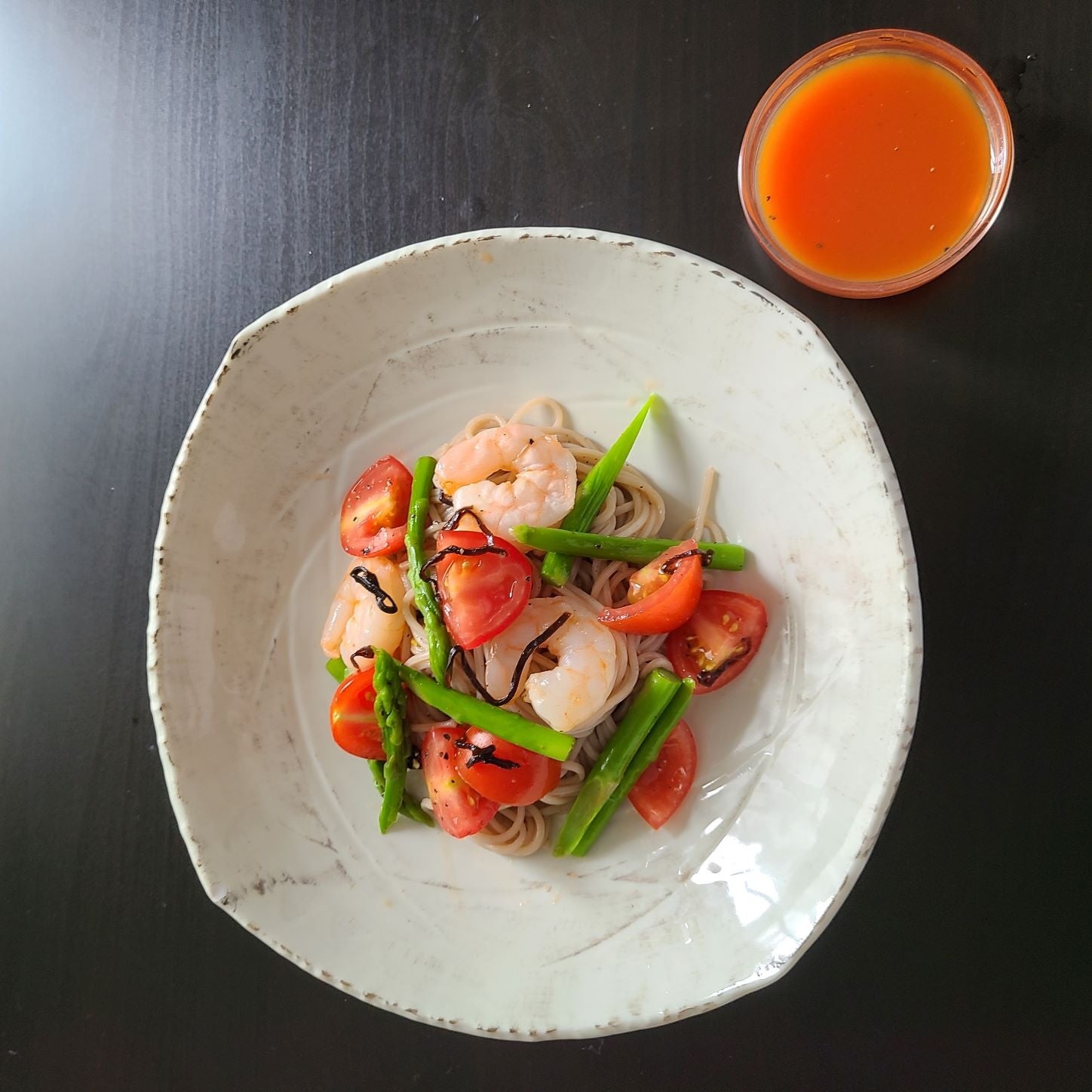 コオロギパウダーを練り込んでいるので一見するとお蕎麦のような色味ですが立派なパスタです。それが逆に面白いところと言えます。