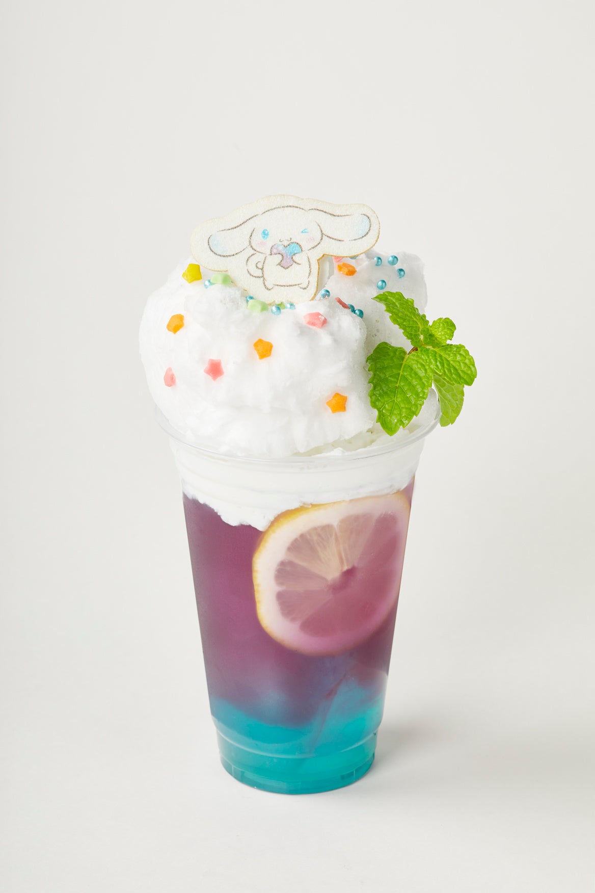 シナモロールをイメージしたバタフライピーレモネード。