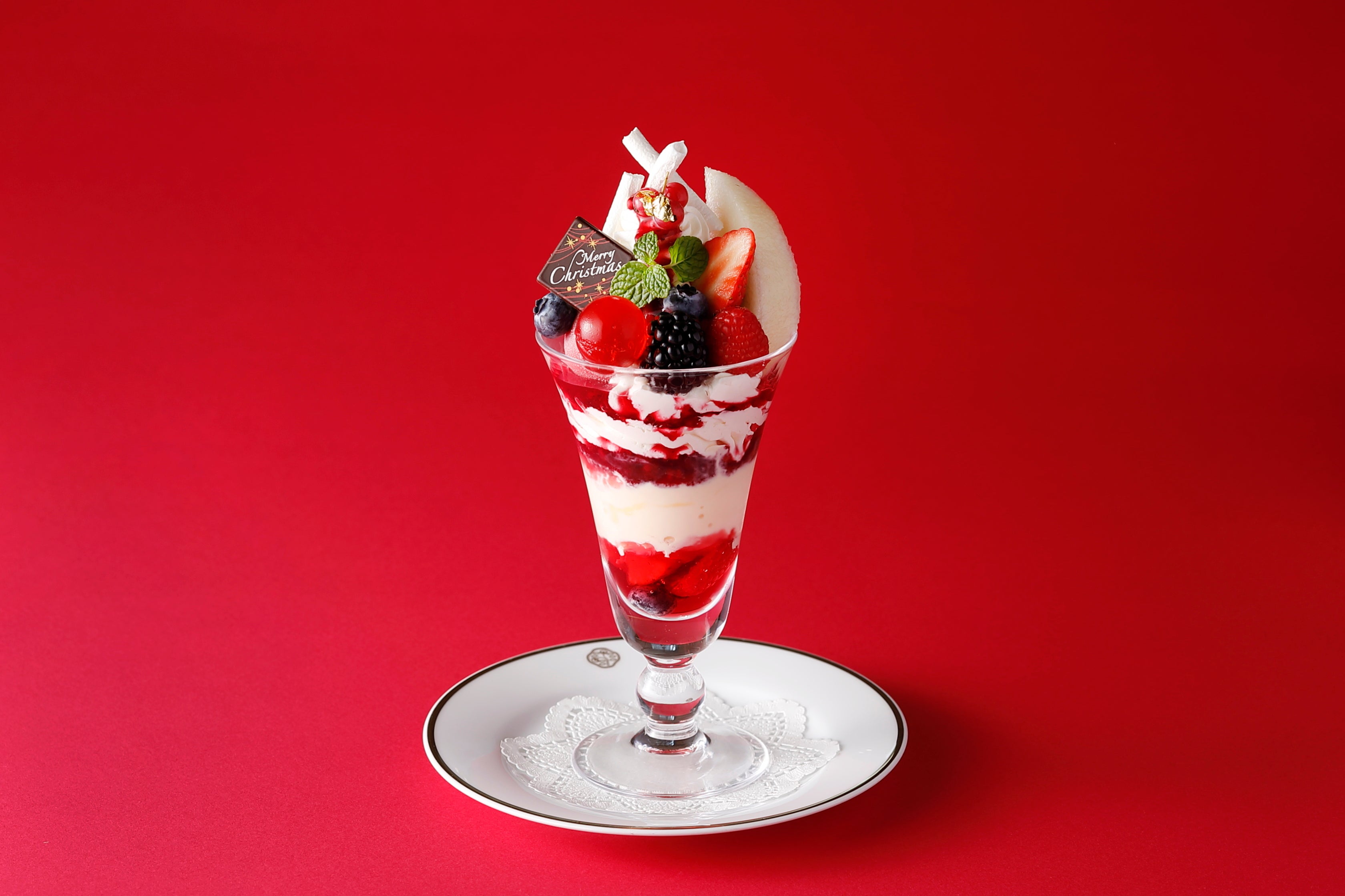 クランベリーゼリーにバニラアイスクリーム、濃厚で甘酸っぱい特製ソースの層が織りなすグラスにフレッシュないちご、ラズベリー、クランベリー、ブルーベリー、ブラックベリーなど様々なベリー系のフルーツをあしらったパフェはクリスマス気分を華やかに盛り上げてくれるおすすめの一品です。自分へのご褒美に、ご友人やご家族との楽しい会話と共に、クリスマスまでのひと時を資生堂パーラーで是非お楽しみください。