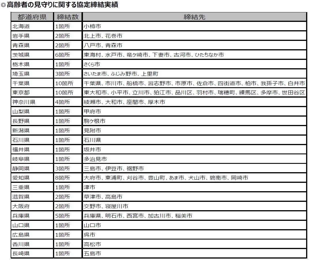 当社では、全国70か所の地方自治体と高齢者の見守りに関する協定を締結しています(2022年12月1日時点)。