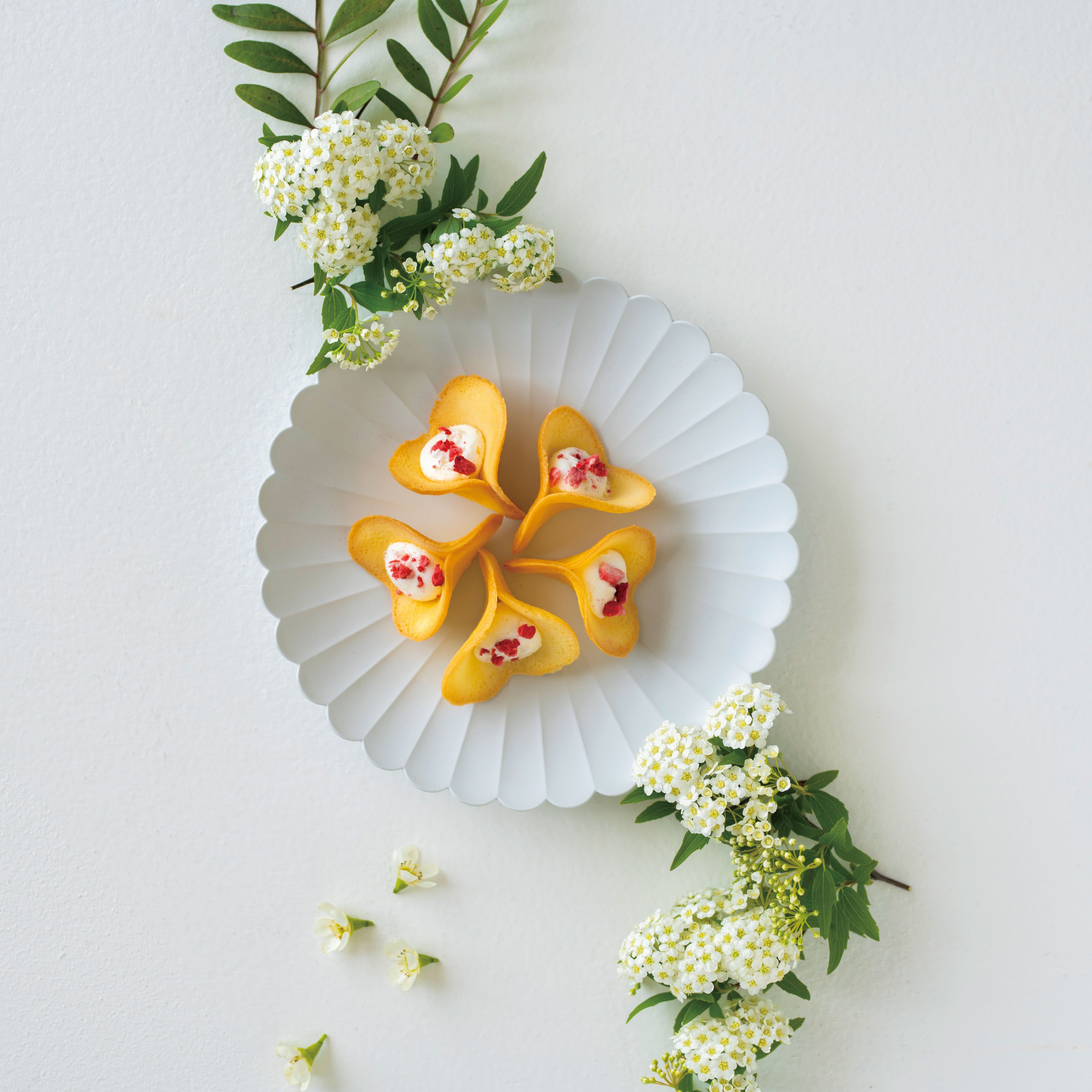 ルフルはお花の形のラングドシャにふんわりとしたクリームを挟んだ焼き菓子です。生地の成型は京菓子づくりのノウハウを活かし職人が手作業で行います。