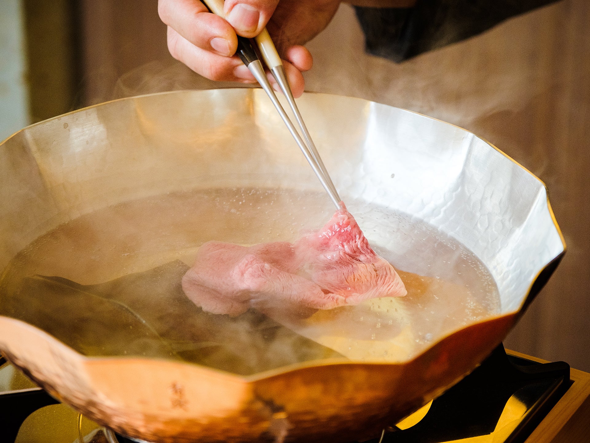 今回当店で提供する「特産松阪牛コース」には、第71回 松阪肉牛共進会にて優秀賞4席(4位)に輝いた「特産松阪牛(津市一志町 前川誠)」を使用しています。特産松阪牛の特徴は、きめの細かいサシが入った見た目と、甘く深みのある上品な香り、そして、まろやかな脂の旨みです。柔らかな肉質は、お箸ですぐに解すことができ、脂肪融点がとても低いため、舌の上に乗せるだけでとろけるような口どけを堪能することができます。肥育農家の方が大切に育て上げた特産松阪牛を、高級食材と組み合わせた渾身のコース料理をご提供いたします。