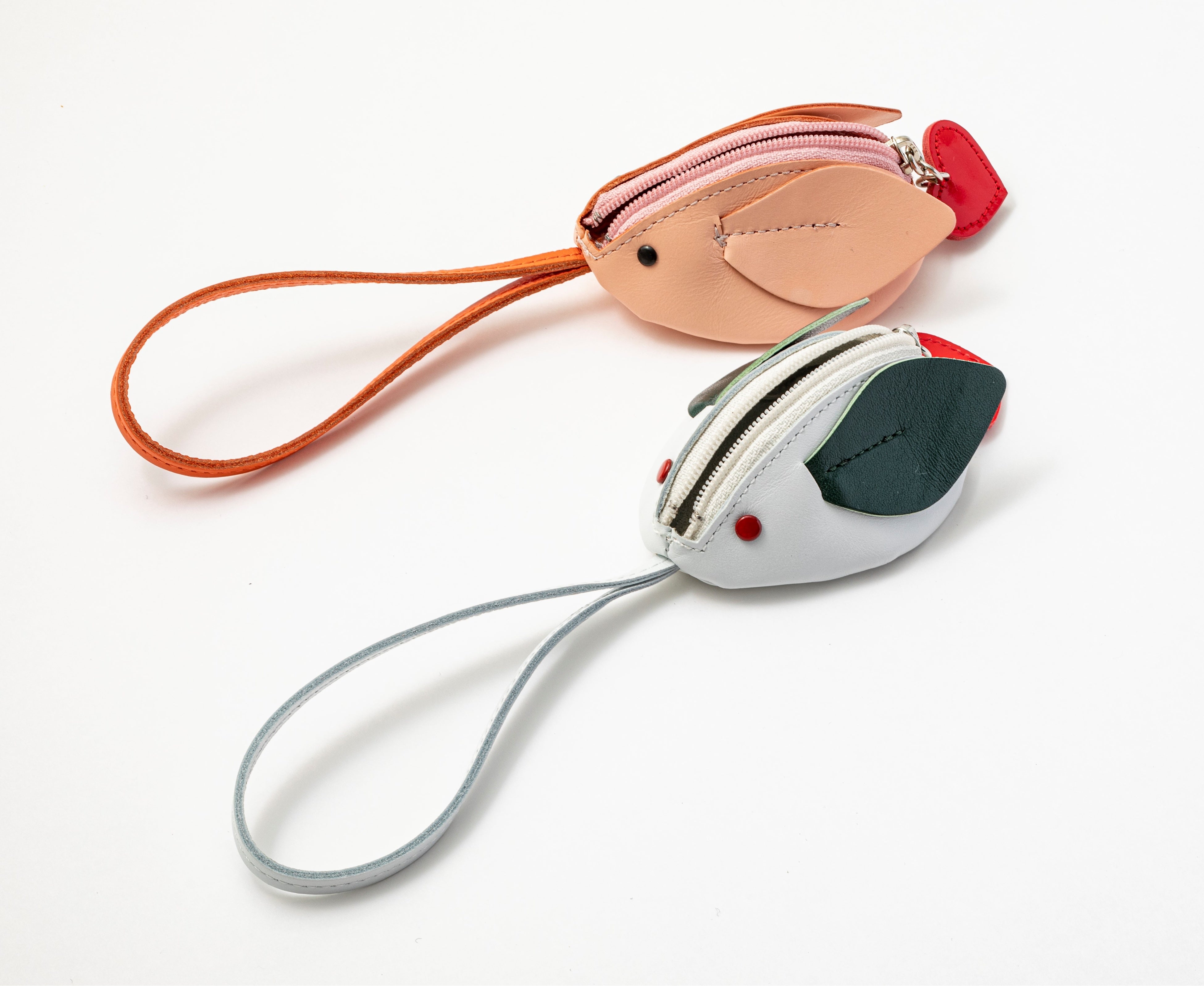 ツキを呼ぶといわれている縁起の良い「ウサギ」をかわいい手のひらサイズにお作りしたレザーポーチです。