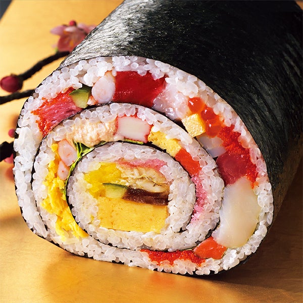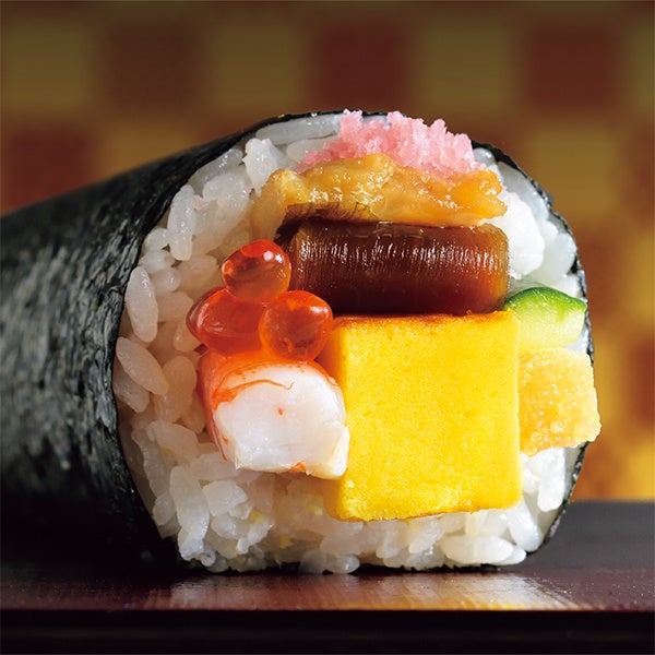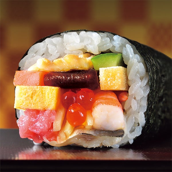 ほたてや、煮穴子、醤油漬けいくらなど、23品目の具材を巻き上げた、幅約12cm、重量1.5kgの“ごくぶと”太巻を新たに展開します。ご家族で切り分けて楽しむのにおすすめの商品です。