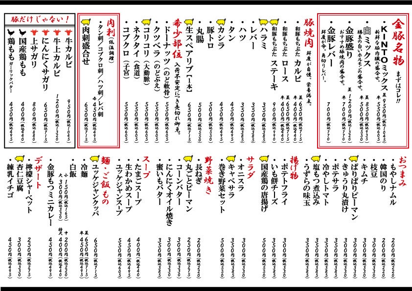 「ホルモン・焼肉 金豚KINTO」は、「豚肉」を専門に取り扱う焼肉店です。同店は生産者・物流業者の方々にご協力いただき、独自のルートを構築し、新鮮な豚肉の仕入れを行っております。