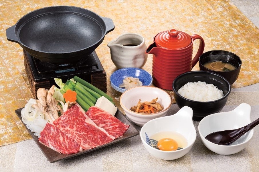 お客さま自身の一番好きな食べ方でお召し上がりいただきたいと考え、夢庵“初”の“京風すき焼き”に仕立てました。鍋で牛肉を焼いた後、自家製たれを少量入れ、卵に付けてお肉のみをいただいても良し、野菜を入れ、お好みのタイミングで昆布出汁を入れても良しと、お客さまのお好みの食べ方でお楽しみいただけます。