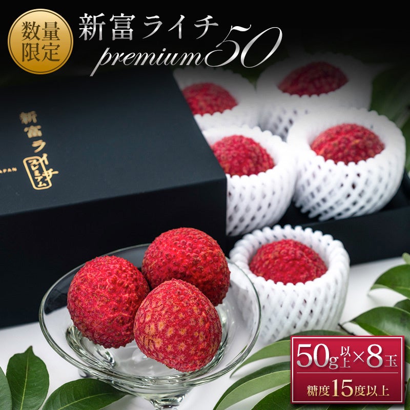 ◎【ふるさと納税】希少!国産<新富ライチpremium50>50g以上×8玉[先行予約]