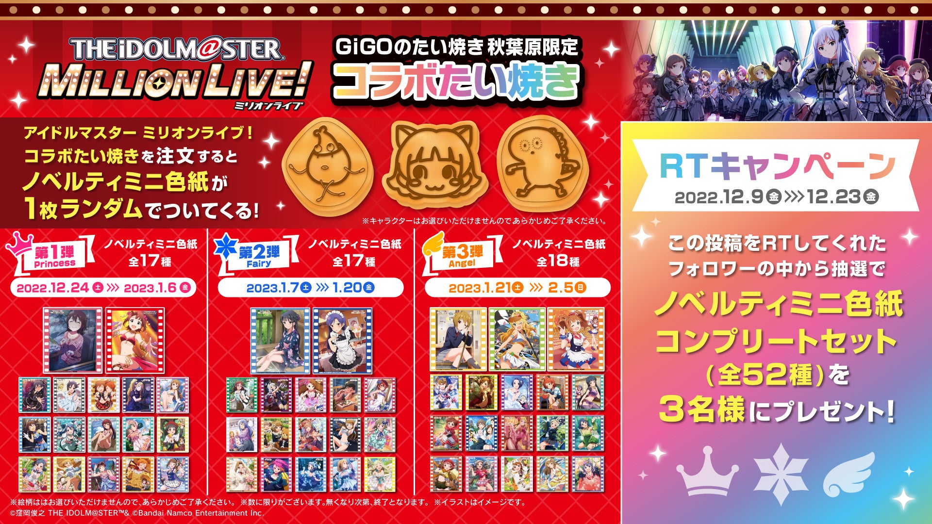 GiGOのたい焼き秋葉原にて『アイドルマスター ミリオンライブ!』とコラボレーションしたコラボたい焼き『ミリオンライブ!焼き』を12月24日(土)より発売いたします。