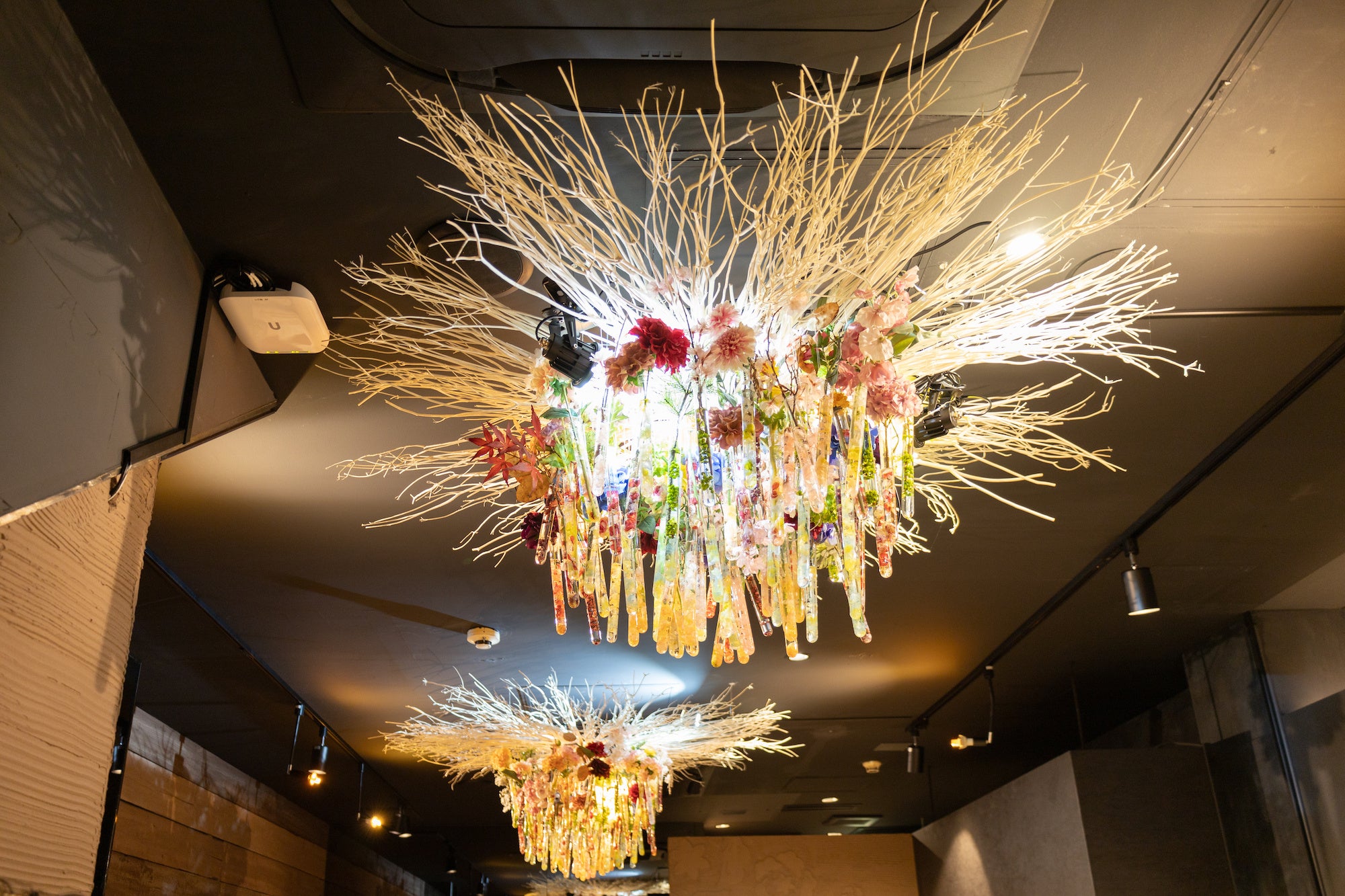 店内を彩る「お花のシャンデリア」