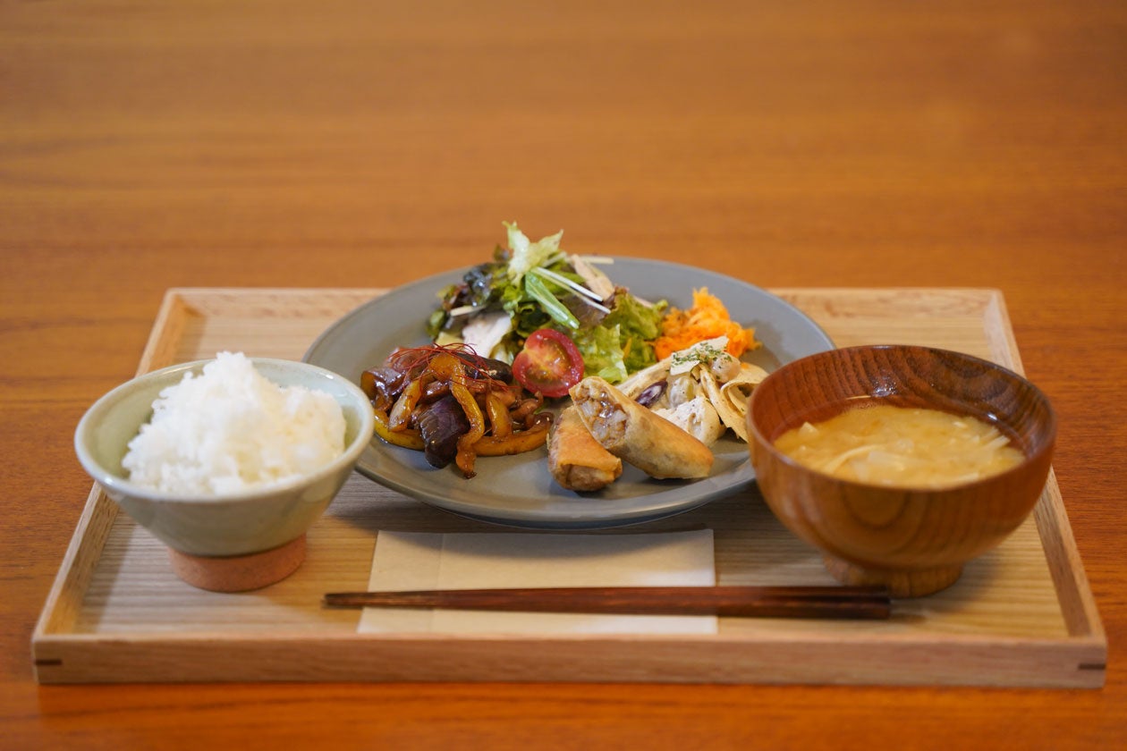旧精肉店をリノベーションした、ご飯と味噌汁、数種類のおかずの定食が食べられるまちの食堂です。本件は後述する弊社と各務原市との新たな取組み「KAKAMIGAHARA A to Z PROJECT」の1 号案件で、1 階部分に食堂とギャラリー、2階については、今後改装をして活用予定です。地域の人やもの、ことを繋ぐ「まちの案内所」としても運営していきます。