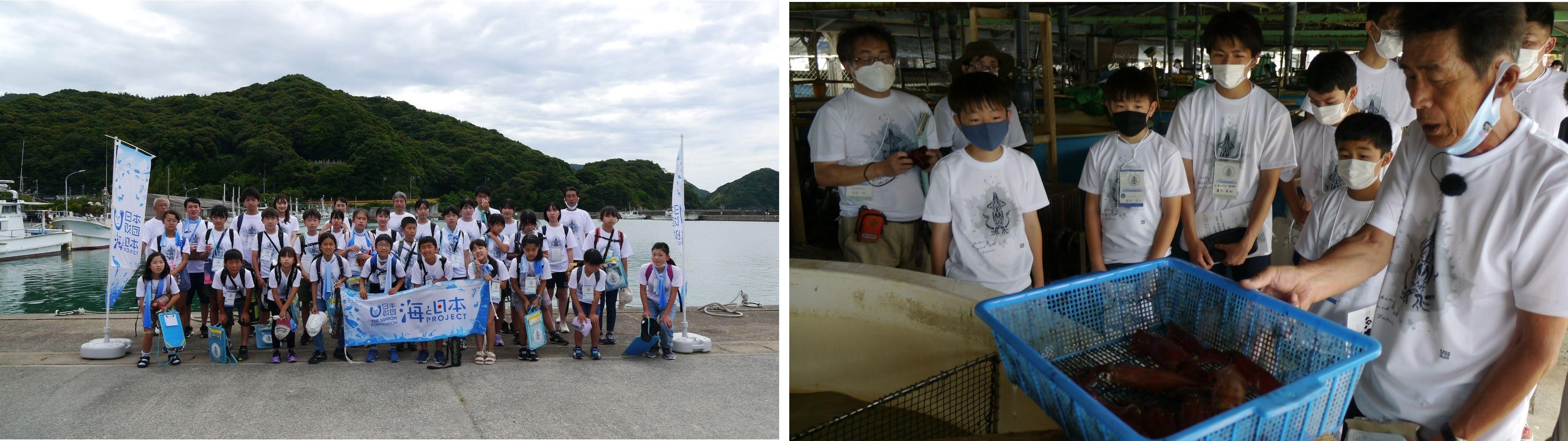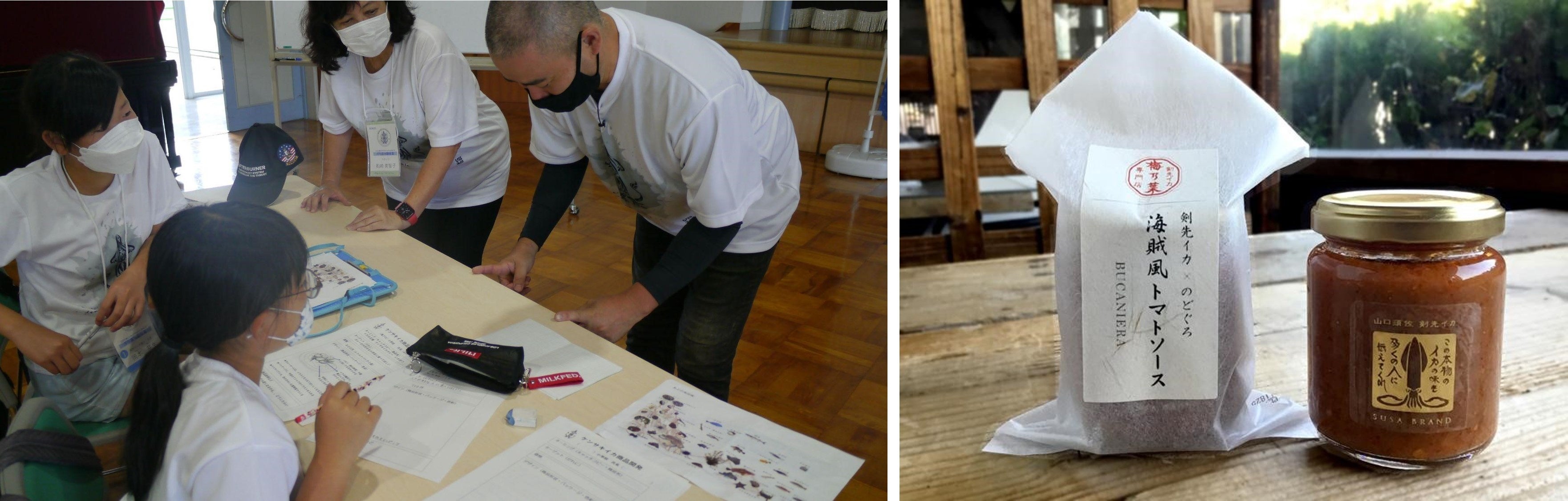 (左)小学5・6年生20人による「ぶち海体験隊」(右)ケンサキイカを通して海の現状を学ぶ