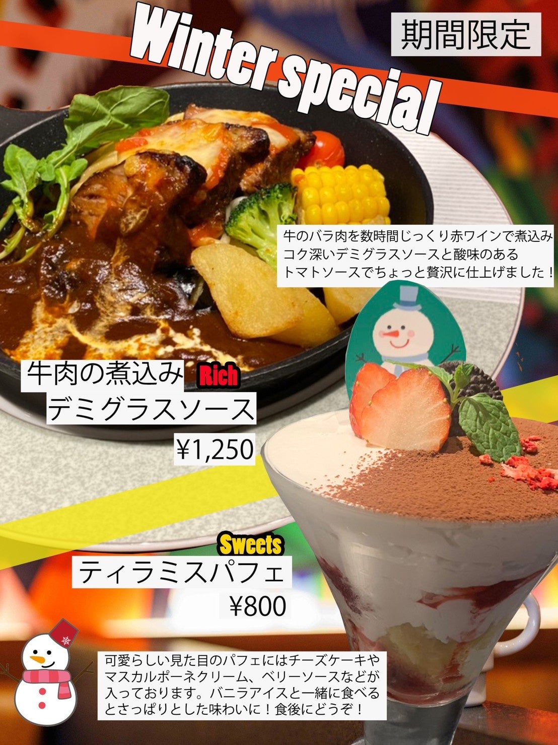 New York Kitchen ARAIリーフウォーク稲沢店(運営:株式会社RAVIPA 本社:東京都豊島区)では、12月限定メニューを12月6日より販売スタート。牛肉煮込みのデミグラスソースと見た目からかわいい冬仕立てのティラミスをご用意!ぜひお楽しみください!