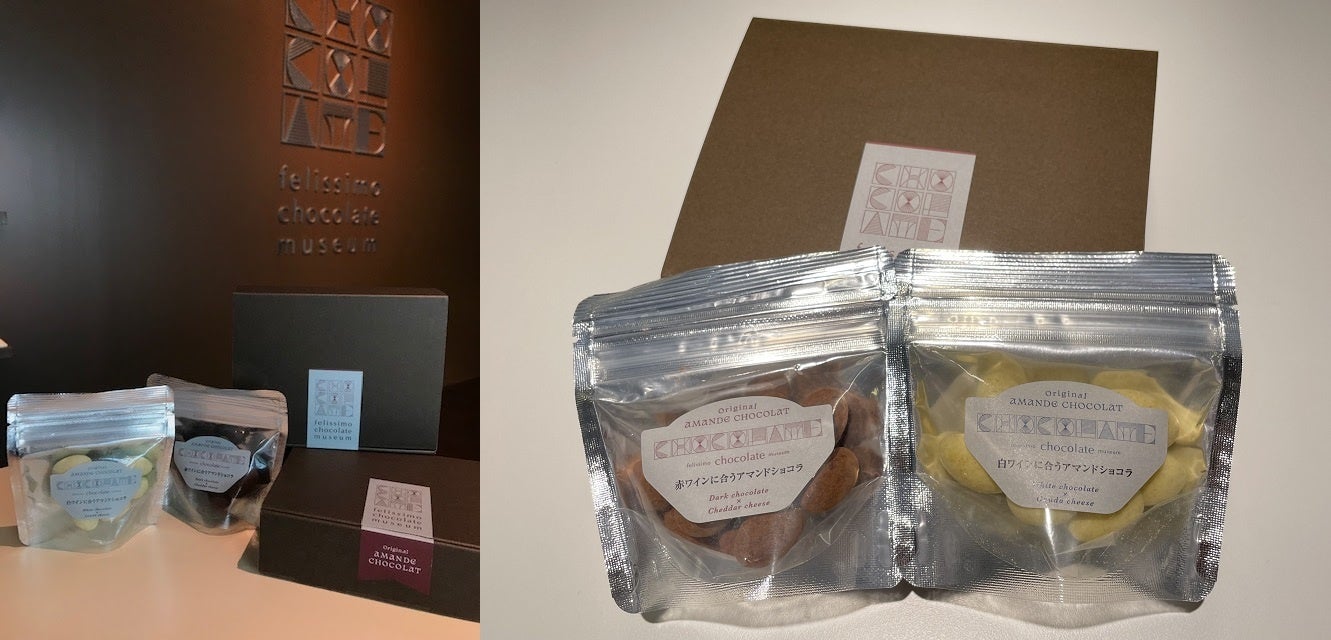 felissimo chocolate museumは、チョコレートの多様性・可能性を発信する新しいミュージアムで、「世界で最も多くのチョコレートパッケージをコレクションするミュージアム」をチョコレートを愛する人々とともにつくることを目指しています。この「felissimo chocolate museum Original ワインと合うアマンドショコラ」のパッケージも、ミュージアムに収蔵されます。同館のある「Stage Felissimo[ステージ フェリシモ]」には、2021年11月19日に「f winery[エフ ワイナリー]」もオープンしています。このオリジナルチョコレートは、f wineryのオリジナルワインと合わせて楽しんでいただくことも想定し、開発途中には、f wineryのソムリエにも試食をしてもらい、ワインと合わせるためにチーズやハーブの分量の微妙な調整を行って試作を重ねたオリジナルレシピで商品化をしています。甘すぎずチーズやハーブを感じていただけるけれども主張し過ぎず大人な味わいに仕上がったチョコレートはそのまま食べていただいてもおいしいですが、f wineryのワインのほかお手元のワインと合わせて召し上がっていただくと、一層豊かな時間を楽しめしあわせなひと時を味わっていただけると思います。チョコレートは、食べるとき、また贈ったり贈られたりするとき、しあわせな気持ちにさせてくれる魅力があります。チケット無しで利用いただけるミュージアム内のショップスペース「museum holic[ミュージアム ホリック]」で数量限定で購入いただくことができますので、Stage Felissimoのfelissimo chocolate museumへ足をお運びください。このチョコレートは、felissimo chocolate museumを体感いただくことができる商品として、フェリシモの株主さまへお贈りする「PRESENT(株主優待のお品)」としても、対象となる株主さまへお届けしています。