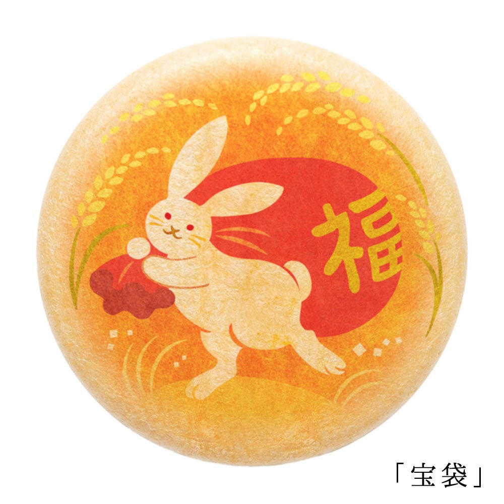 飛躍、豊穣、家内安泰。かずかずの縁起とともに愛される令和五年の干支「卯(う)」=うさぎ。最中種にあしらわれた意匠それぞれに、新年の幸福への想いをこめました。