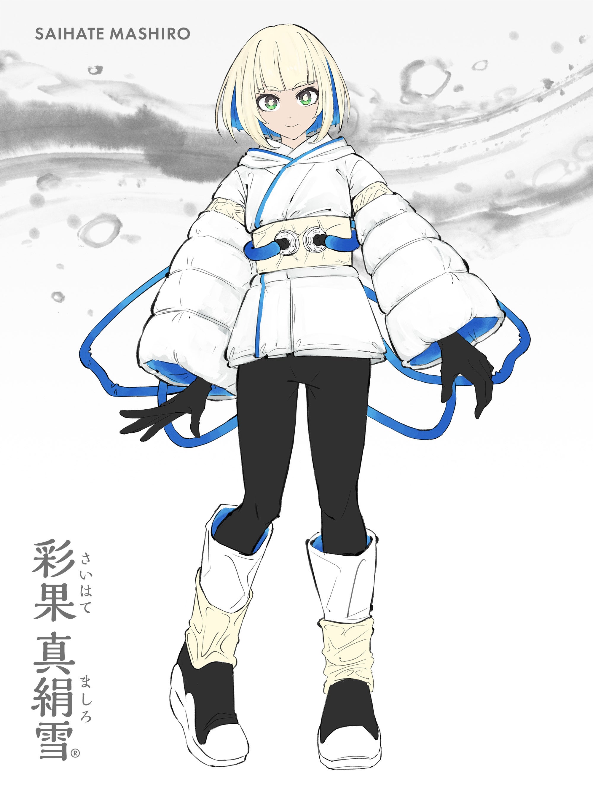 イラストレーター・じんかい様(https://linktr.ee/zinkai)にデザイン頂いた、彩果真絹雪の設定資料を公開致します!透明感のある爽やかなイメージ。服のデザインは、湯葉と絹をイメージカラーに白を基調としています。