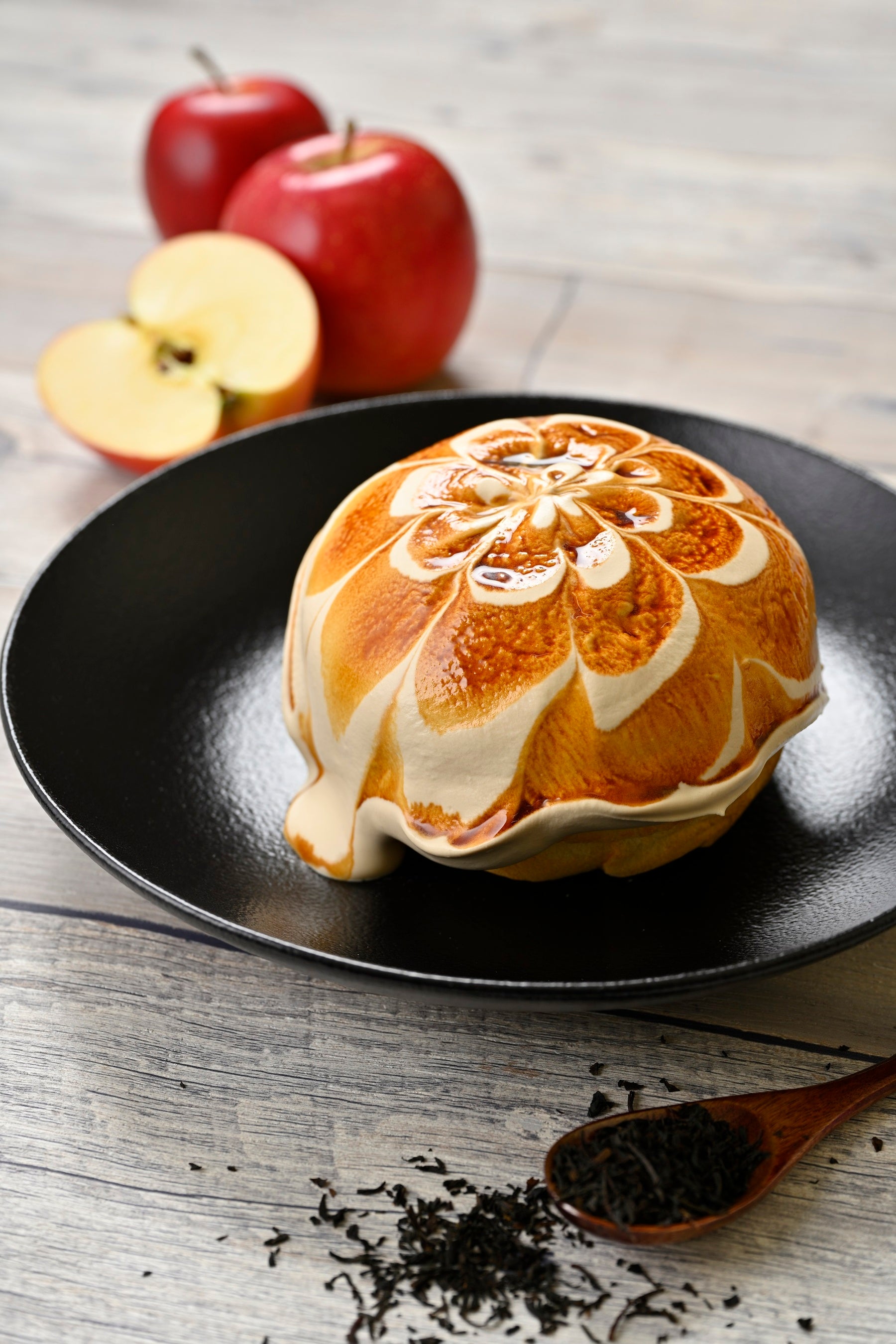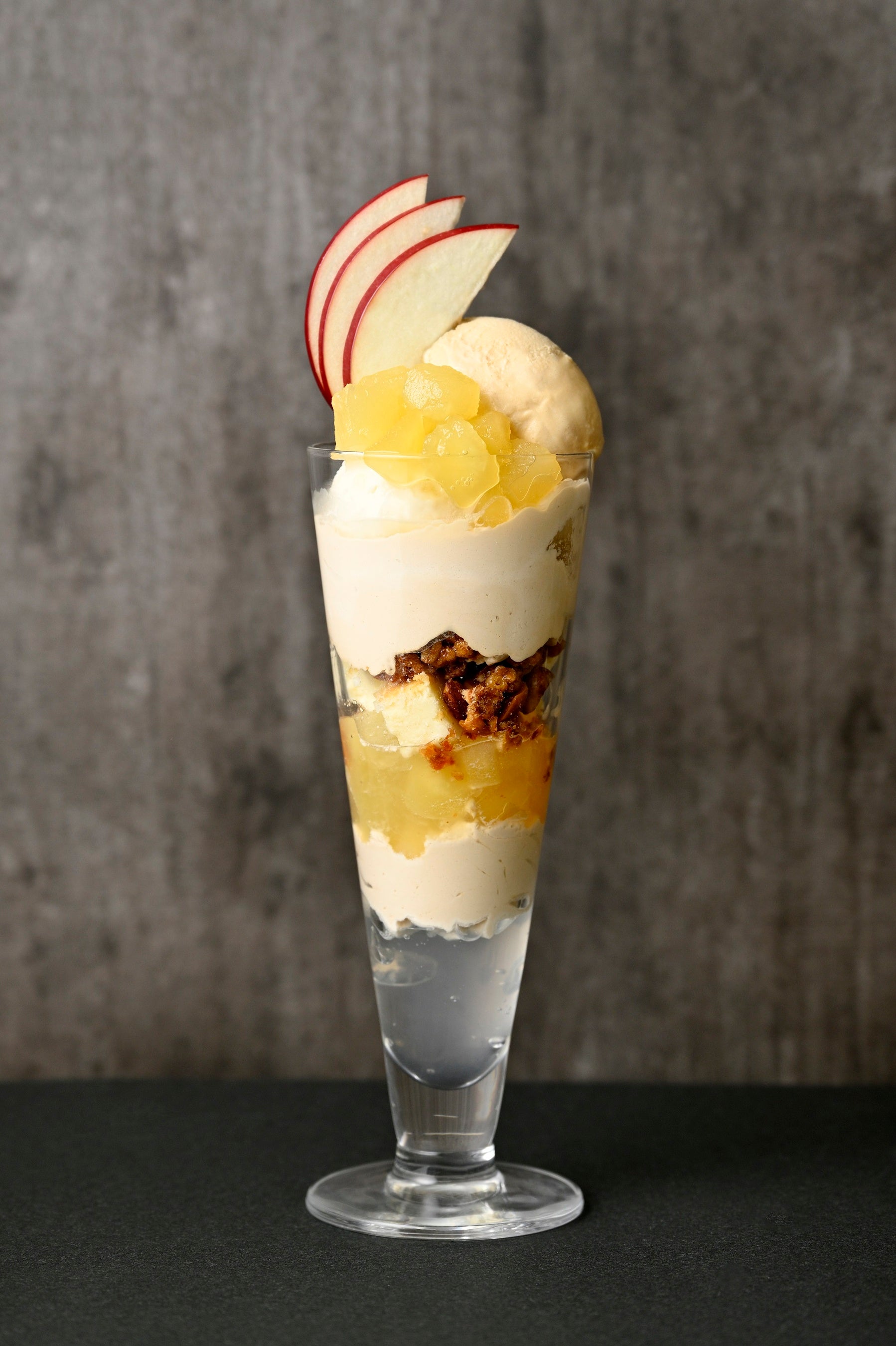 北海道七飯町産のりんごコンポートと、紅茶クリーム、チーズケーキ、青森産りんごアイスを合わせました。りんごの食感と紅茶の香りが重なり合う今だけの味わいです。
