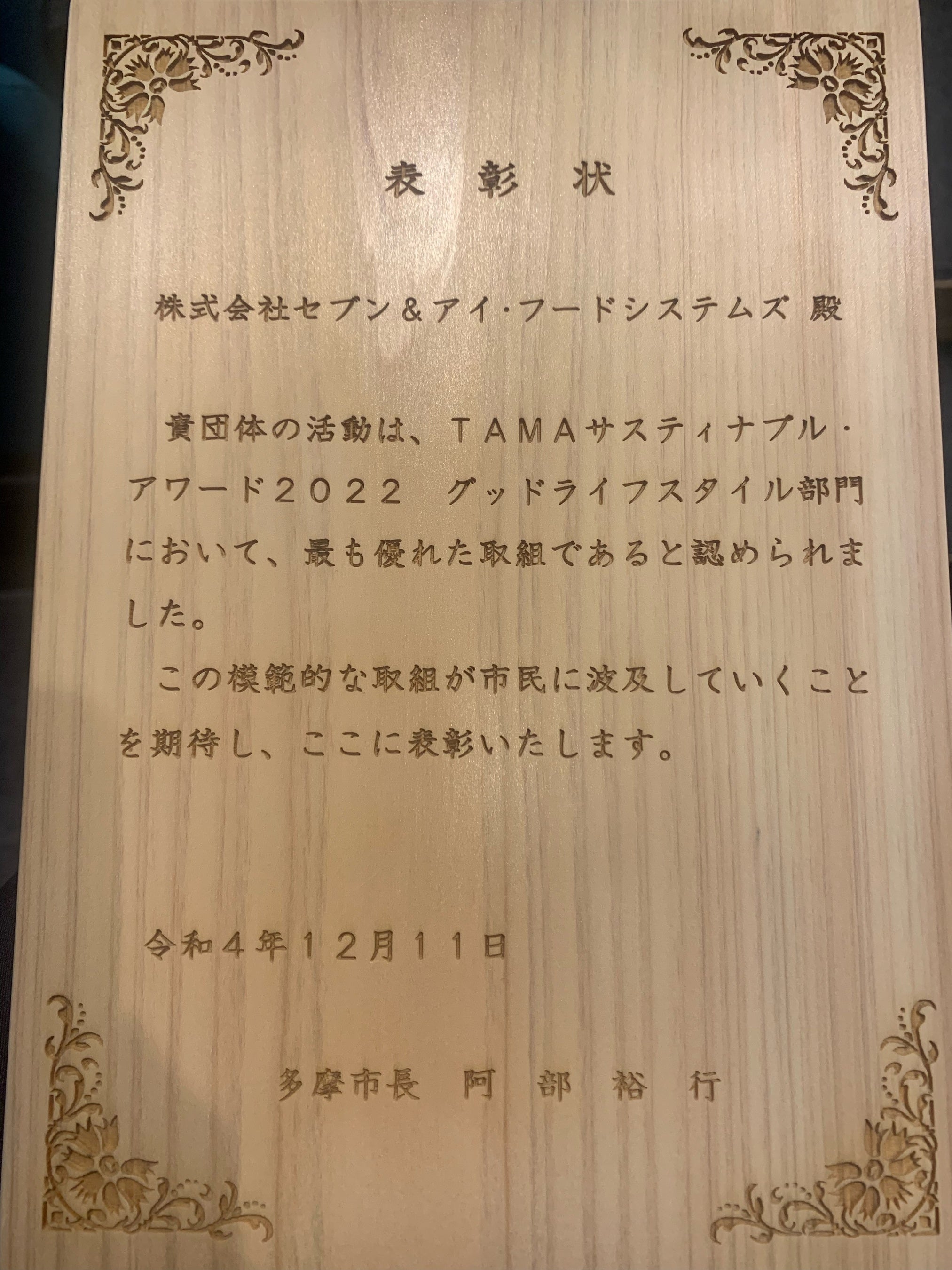 株式会社セブン&アイ・フードシステムズ(本社:東京都千代田区、代表取締役:小松 雅美)は、2022年12月10日(日)、東京都多摩市が主催する「TAMAサスティナブル・アワード2022」において、グッドライフスタイル部門大賞を受賞しました。