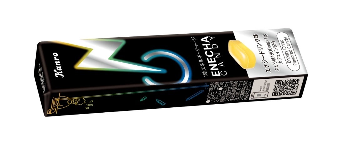 今回発売する「11粒ENECHA CANDY(エネチャ キャンディ)」は、エナジードリンク味のティックキャンディです。勉強や仕事を頑張りたいときにうれしい、ブドウ糖(1本1800㎎)とカフェイン(1本4.6㎎)入りのキャンディです。