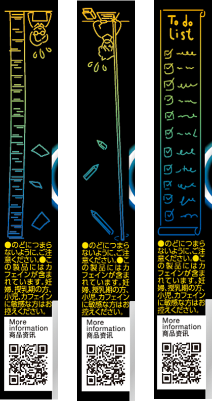 パッケージはエナジードリンクを想起させる縦型を採用。ブラックとシルバーでスタイリッシュさを演出しました。側面には1粒食べて破っていくたびに“頑張り”が目に見えるデザインが施されています。