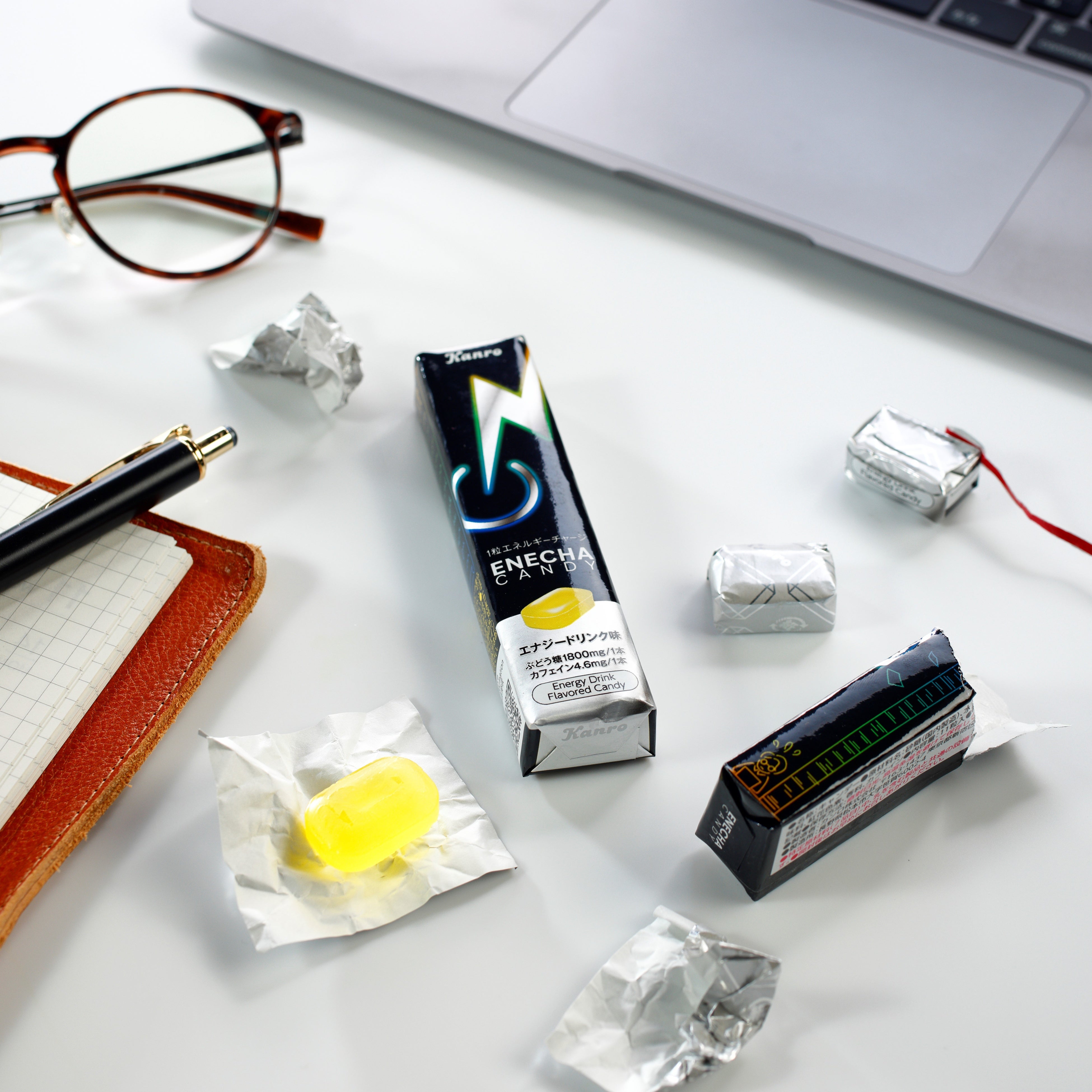 勉強中や仕事中など場所を選ばず、エナジードリンクのように「ENECHA CANDY」を口にすることでエネルギーチャージできるキャンディです。自分のペースで試験の直前や移動中にも食べていただくことができます。